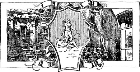 'Arenula'—'fine sand'—'Renula,' 'Regola'—such is the derivation of the name of the Seventh Region, which was bounded on one side by the sandy bank of the Tiber from Ponte Sisto to the island of Saint Bartholomew, and which Gibbon designates as a 'quarter of the city inhabited only by mechanics and Jews.' The mechanics were chiefly tanners, who have always been unquiet and revolutionary folk, but at least one exception to the general statement must be made, since it was here that the Cenci had built themselves a fortified palace on the foundations of a part of the Theatre of Balbus, between the greater Theatre of Marcellus, then held by the Savelli, and[Pg 2] the often mentioned Theatre of Pompey. There Francesco Cenci dwelt, there the childhood of Beatrice was passed, and there she lived for many months after the murder of her father, before the accusation was first brought against her. It is a gloomy place now, with its low black archway, its mouldy walls, its half rotten windows, and its ghostly court of balconies; one might guess that a dead man's curse hangs over it, without knowing how Francesco died. And he, who cursed his sons and his daughters and laughed for joy when two of them were murdered, rebuilt the little church just opposite, as a burial-place for himself and them; but neither he nor they were laid there. The palace used to face the Ghetto, but that is gone, swept away to the very last stone by the municipality in a fine hygienic frenzy, though, in truth, neither plague nor cholera had ever taken hold there in the pestilences of old days, when the Christian city was choked with the dead it could not bury. There is a great open space there now, where thousands of Jews once lived huddled together, crowding and running over each other like ants in an anthill, in a state that would have killed any other people, persecuted occasionally, but on the whole, fairly well treated; indispensable then as now to the spendthrift Christian; confined within their own quarter, as formerly in many other cities, by gates closed at dusk and opened at sunrise, altogether a busy, filthy, believing, untiring folk that[Pg 3] laughed at the short descent and high pretensions of a Roman baron, but cringed and crawled aside as the great robber strode by in steel. And close by the Ghetto, in all that remains of the vast Portico of Octavia, is the little Church of Sant' Angelo in Pescheria where the Jews were once compelled to hear Christian sermons on Saturdays.