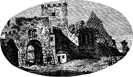 PORTICO OF OCTAVIAClose by that church Rienzi was born, and it is for ever associated with his memory. His name calls up a story often told, yet never clear, of a man who seemed to possess several distinct and contradictory personalities, all strong but by no means all noble, which by a freak of fate were united in one man under one name, to make him by turns a hero, a fool, a[Pg 4] Christian knight, a drunken despot and a philosophic Pagan. The Buddhist monks of the far East believe today that a man's individual self is often beset, possessed and dominated by all kinds of fragmentary personalities that altogether hide his real nature, which may in reality be better or worse than they are. The Eastern belief may serve at least as an illustration to explain the sort of mixed character with which Rienzi came into the world, by which he imposed upon it for a certain length of time, and which has always taken such strong hold upon the imagination of poets, and writers of fiction, and historians.