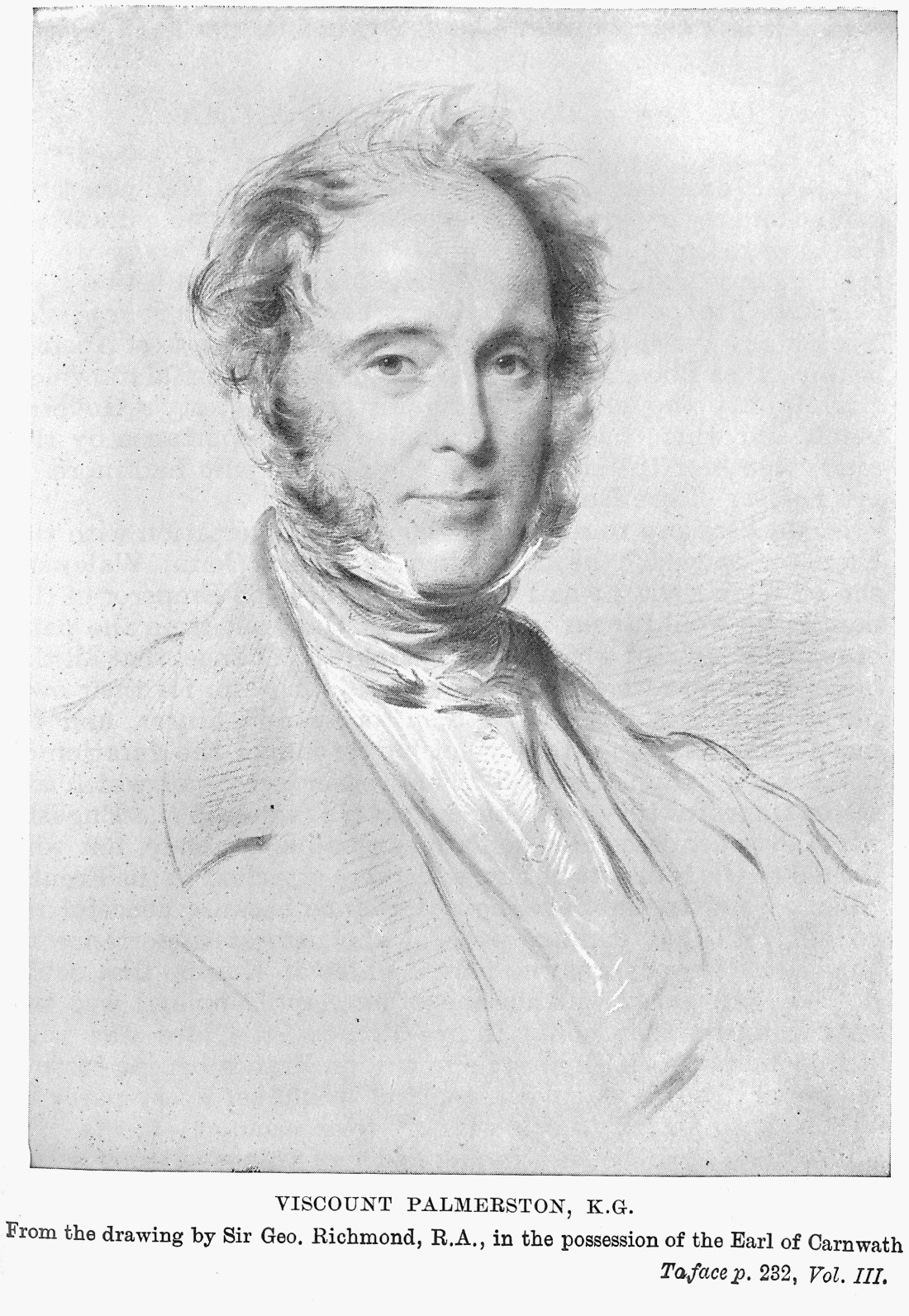 | Viscount Palmerston, K.G. From the drawing by Sir George Richmond, R.A., in the possession of the Earl of Carnwath |