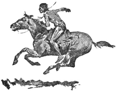 The feathered dandy now did a singular thing. He galloped towards the two officers almost as if to bear them down, and, steering much too close, flashed by yelling, amid a clatter of gravel.