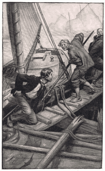 When they reached the firm sand that marked high tide, I was dropped, and none too gently. Yellow Handkerchief kicked me spitefully in the ribs, and then the trio floundered back through the mud to the junk. A moment later I heard the sail go up and slat in the wind as they drew in the sheet. Then silence fell, and I was left to my own devices for getting free.