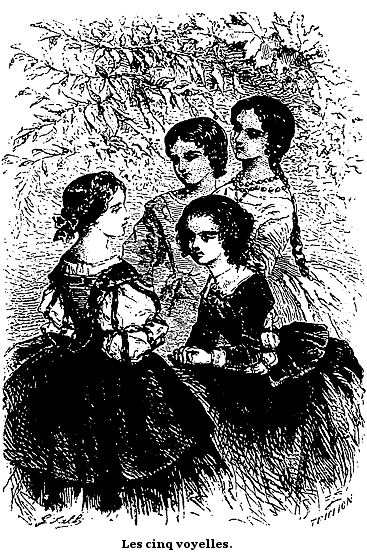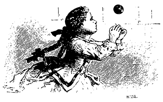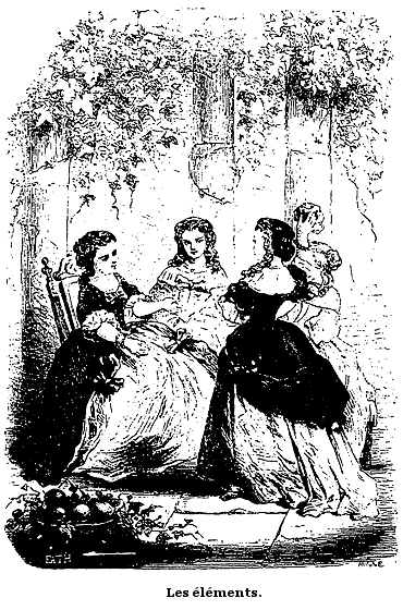 Une jeune fille désignée par le sort pose sa tête sur les genoux d'une personne assise. Elle place sa main ouverte sur son dos, à la hauteur de la ceinture, et chacune tour à tour lui donne un coup léger avec ses doigts. Il faut qu'elle devine qui a frappé, et c'est celle qui est devinée qui prend la place à son tour. On ne doit ni frapper trop fort, ni piquer la main, ni se permettre toute autre 19 plaisanterie de mauvais goût; là comme ailleurs les jeunes filles bien élevées se feront toujours reconnaître. Elles éviteront aussi de crier quand elles seront surprises: le bruit n'est pas de la gaieté. Cette recommandation que nous venons de donner a été développée sous forme d'apologue. Nous demandons la permission d'en citer quelques fragments, dans lesquels notre jeu de la main chaude est heureusement décrit.