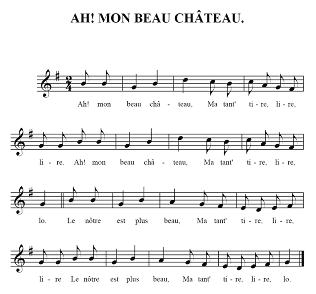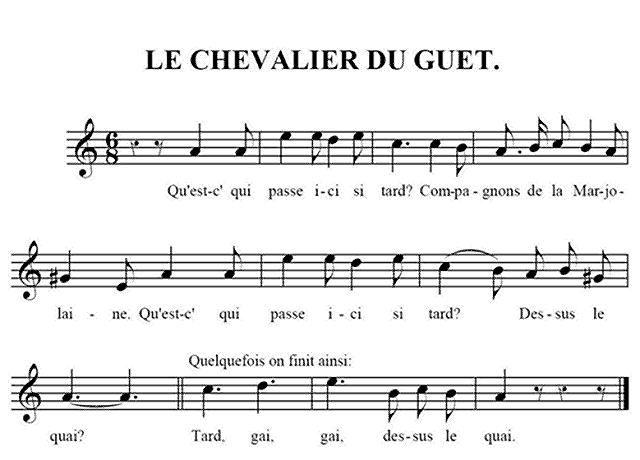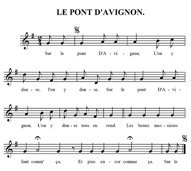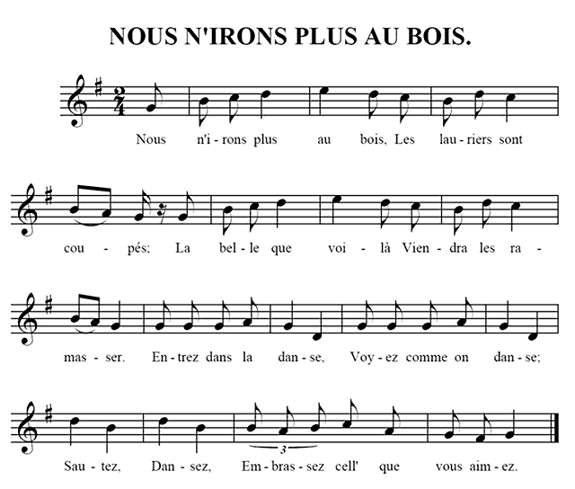 Nous n'irons plus au bois La boulangère Le laurier de Franc Il était une bergère Giroflé, girofla Le ciel et l'enfer La tour, prends garde Ah! mon beau château Gentil coquelicot La mère Bontemps Guilleri Le chevalier du Guet Le pont d'Avignonbr L'avoine |