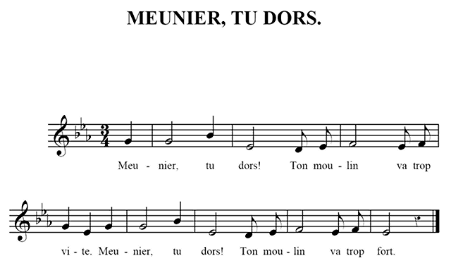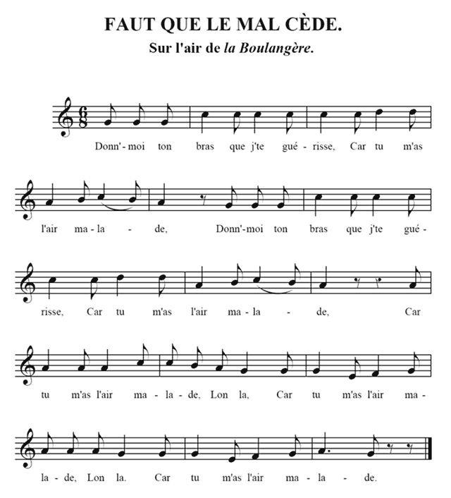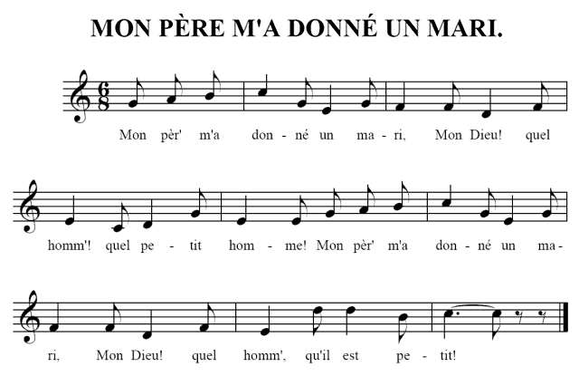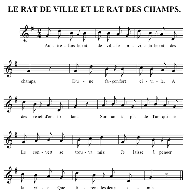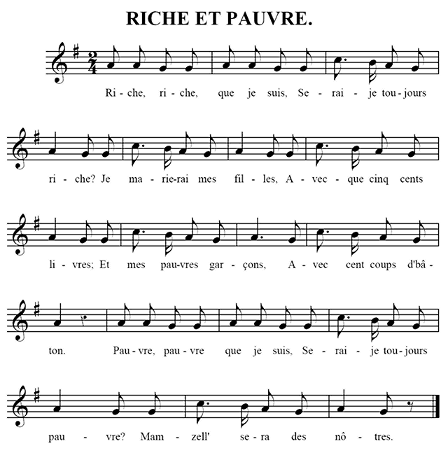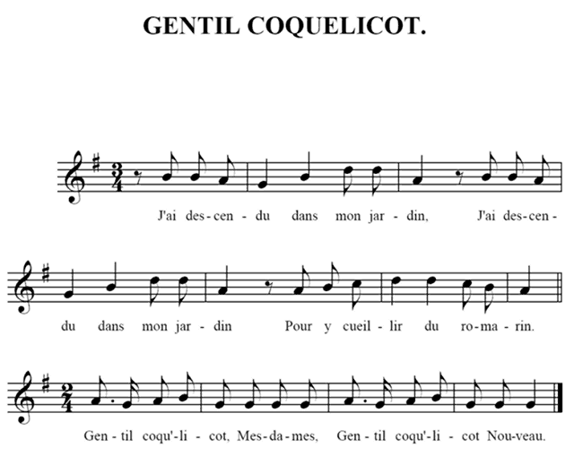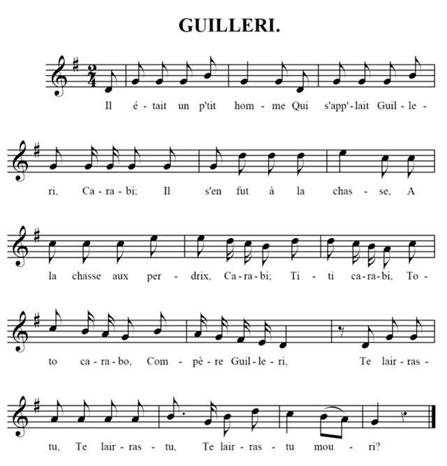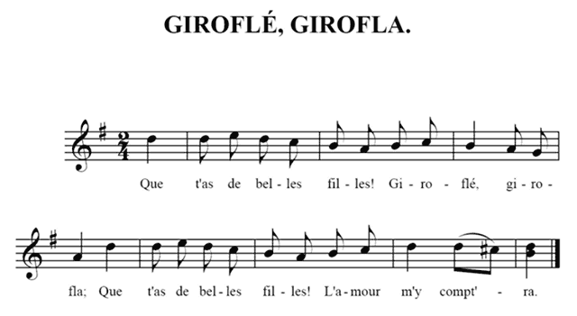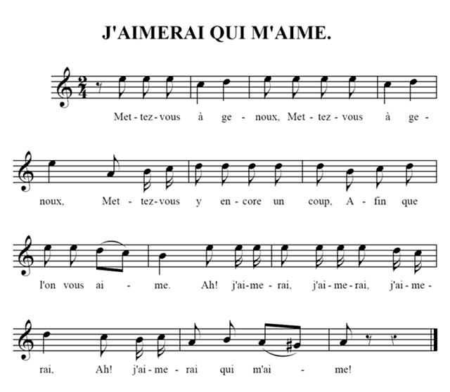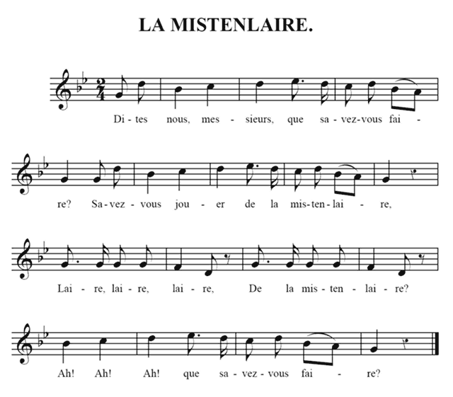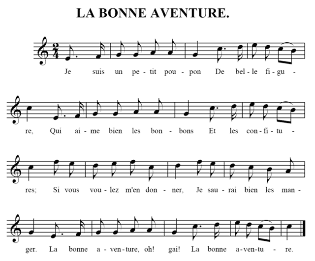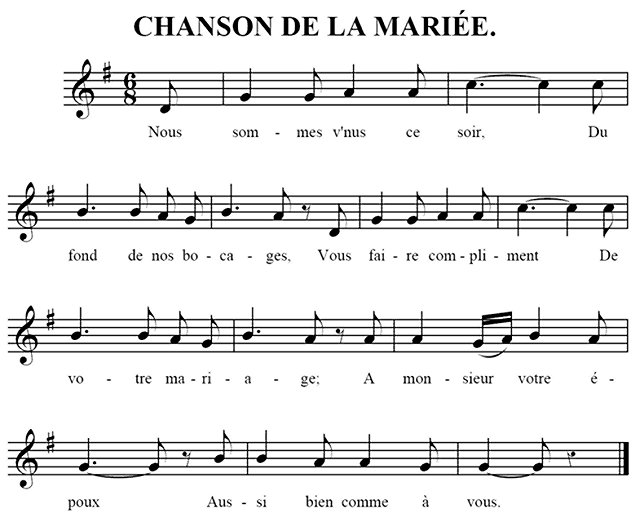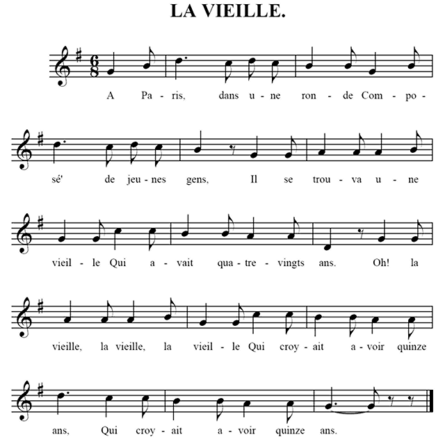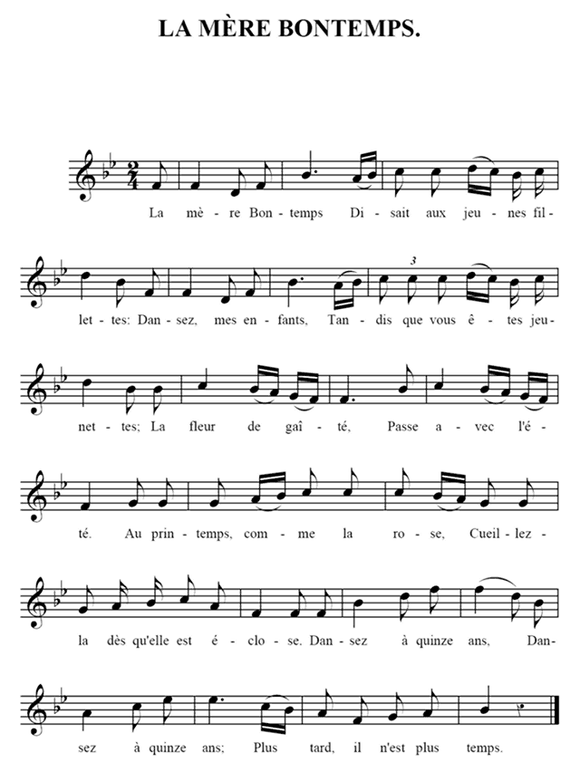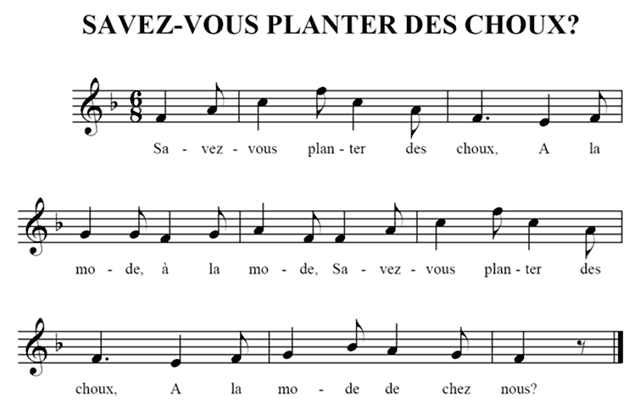 Savez-vous planter des choux? La mistenlaire Biron Ramène tes moutons J'aimerai qui m'aime Il faut que le mal cède La bonne aventure La marguerite Meunier, tu dors La vieille Mon père m'a donné un mari Riche et pauvre Le rat de ville et le rat des champs Chanson de la mariée |