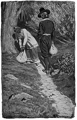 Soon the people began to gather,—grave men and women, dressed in the sober-colored garb of the day, and little children, clad in their “Sunday best,” undergoing the awful process of “going to meeting,” yet some of them, at least, looking at the cool shadowed wood as they passed, and thinking how pleasant it would be to hunt berries or birds’ nests in those sylvan retreats instead of listening to a two hours’ sermon, under imminent danger of perdition if they went to sleep,—for in such seductive guise did the Evil One tempt the souls of these youthful Puritans. Solemn of visage and garb were the groups, although here and there the gleam of a bit of ribbon at the throat of some young maiden, or a bonnet tastefully adorned, showed that “the world, the flesh, and 15 the devil” were not yet wholly subdued among them.
