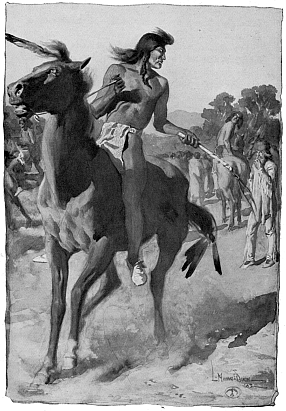 He laid aside his blanket, exposing his stripped body; and with his eagle plume, in his hair and his stone tomahawk in his hand, began to dance the war-dance 276 of his tribe and to chant the song of the battles he had fought.