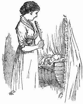 Surely enough, the precious children were on their way down the kitchen stairs. They did not go into that cheerful, well-scrubbed apartment, however, but trudged directly into the adjoining room, in which Liddy, guarded by the faithful old dog, Nero, was now seated, peeling apples. It had been fitted up for Lydia years before when, from a simple housemaid, she was "promoted," as she said, "to have eyes to things and watch over the D's."