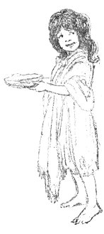 The rest of the people had already gone into the dining-room of the Big House and were eagerly watching a great earthenware boat that hung from the middle of the ceiling. They knew that the boat was full of good things to eat. Beside the boat stood pretty Carmen with a long stick in one hand and a white cloth in the other.