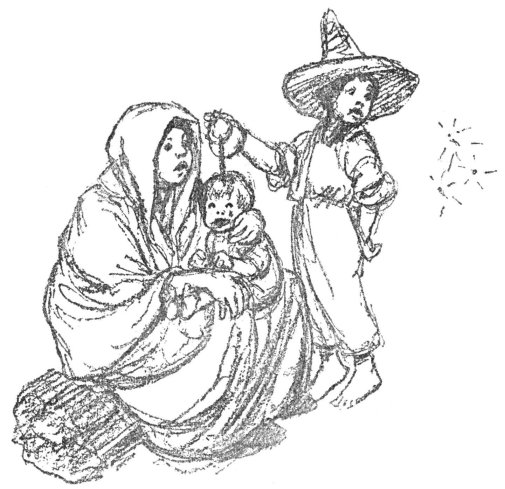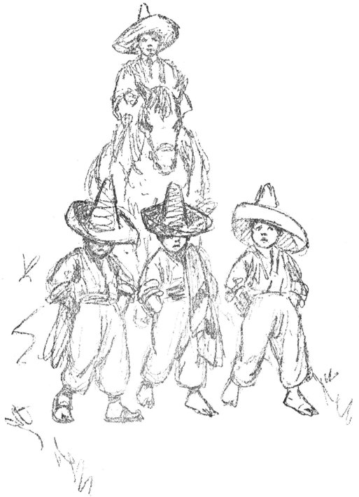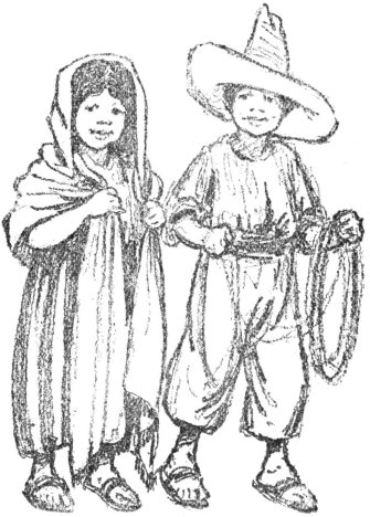 When they reached the priest’s house, the priest himself joined the procession and marched at the head of it, bearing in his hands large wax images of the Holy Family. Behind him came Lupito, the young vaquero who had taken Pancho’s place on the hacienda, with his new wife, and following them, if you had been there, you might have seen Pedro’s wife and baby, and Rafael and José and Doña Josefa, and Pablo and the Twins with Juan and Ignacio and a crowd of other children and grown people whose names I cannot tell you because I do not know them all.