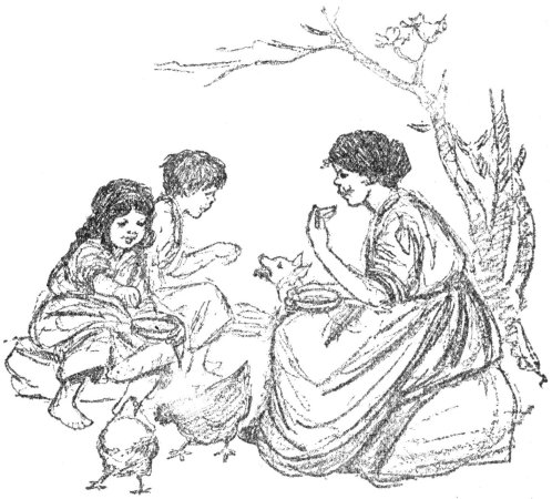 Beside the hut is a fig tree, which bears the most [p 3] delicious figs. Every night the red rooster, the five hens, and the turkey go to roost in its branches, and every day its green boughs make a pleasant shade across the dooryard.