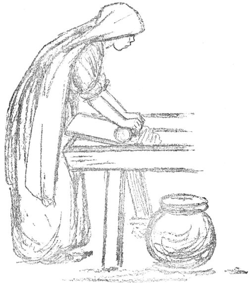 Doña Teresa knelt before the brasero and pulled out the ashes of yesterday’s fire. Then she put in some little sticks, lighted them, and set a flat red dish on top of the brasero over the tiny flames.