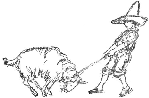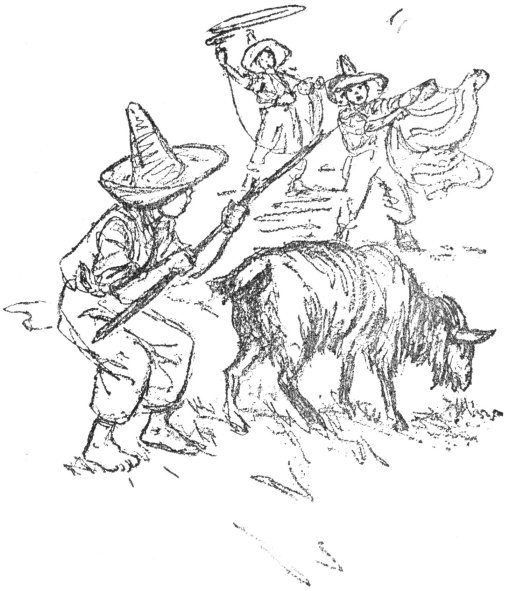 There are hundreds of cows and oxen and sheep and goats on Señor Fernandez’s hacienda, and all day long, every day, Pancho rides about on his horse Pinto, rounding up cattle, driving the cows to pasture after milking, or getting the oxen together for the plowing.