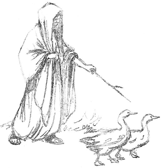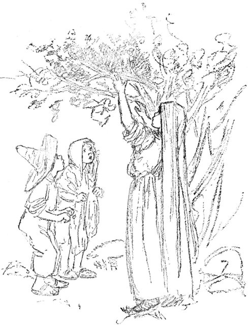She had planned it all carefully. “It will be quite easy to creep up under the fig tree while the red rooster is asleep and seize him by the legs,” she said to the Twins as they walked home from the chapel. “Only you must be very quiet indeed or he will wake up and crow. You know he is a light sleeper!”