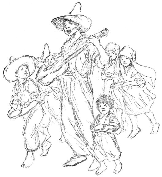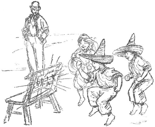 So while the guitars were tinkling and the rest of the people were still singing and dancing and having the merriest kind of a merry Christmas, Pancho and his family said good-night politely to Señor Fernandez and his wife and slipped quietly away to the little adobe hut under the fig tree.