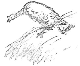 “It’s the turkey, after all,” gasped Doña Teresa. Just then there was a loud crow [p 166] from the roof, and they saw the silhouette of the red rooster making all haste to reach the ridge-pole and fly down on the other side.