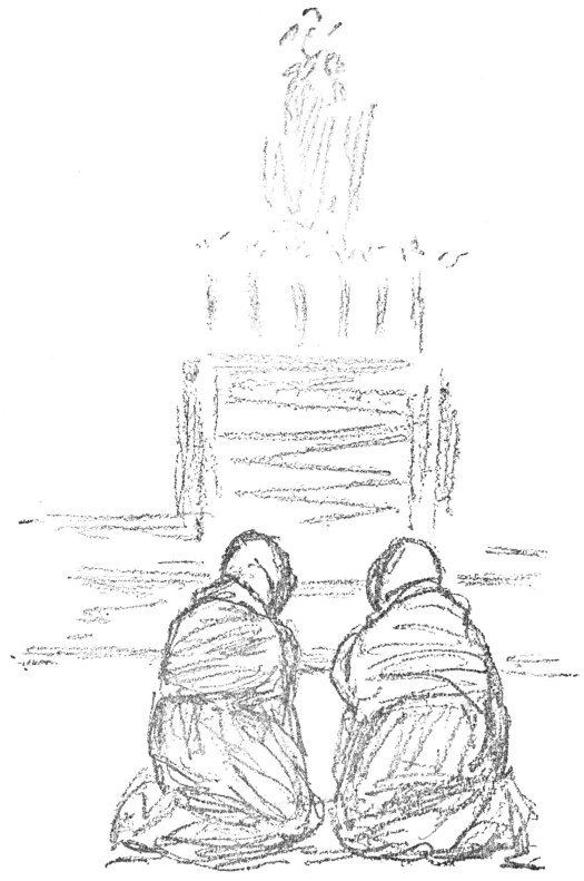 She washed the Twins’ faces to wake them, and then they all three walked in the starlight to the little chapel near the Big House. The altar was blazing with lights, and the floor was covered with the dark figures of kneeling men and women, as the mother and children went in out of the darkness and found a place for themselves in a corner near the door.