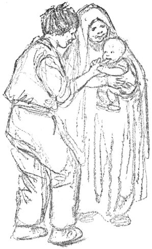 “When Joseph and Mary reached Bethlehem they found the town so full of people, who had come from far and near for this purpose, that there was no room for them in the inn. For eight days they wandered about seeking a place to rest and finding none.