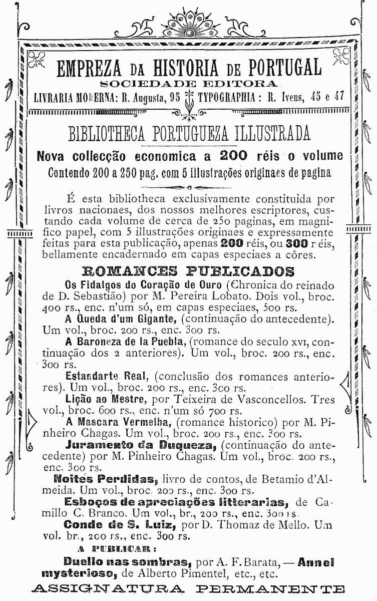 LIVRARIA MODERNA: R. Augusta, 95 ‡ TYPOGRAPHIA: R. Ivens, 45 e 47