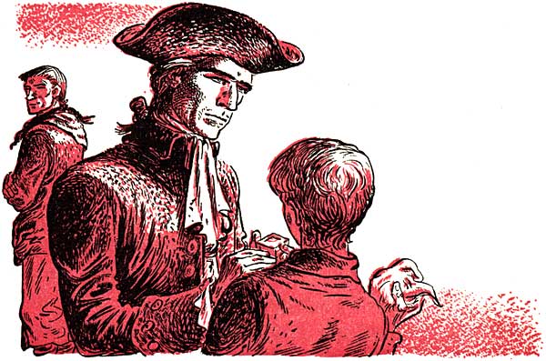 What a day that was! The greetings and handshakings; the enveloping hug for Chris and Amos from Becky Boozer, her eyes filled with happy tears and her bonnet trembling with agitation. Her roguish glances and coy giggles flew out like a flock of doves at the sight of swaggering Ned Cilley, who came down the gangplank carrying a macaw in a cage for "Mistress Boozer," and hustled her behind some bales to kiss her warmly. But most of all and best of the day, that first look from Mr. Wicker that spoke more than any gesture or carefully chosen words could have done. He had no need to speak. Chris could see the pride and pleasure shining in his face, and Mr. Wicker, so solitary all his life, could see in the boy's eyes an affection his own son might have shown him.