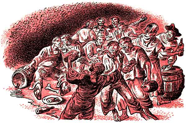 But the bird's attack lasted for only a moment. Then, as Claggett Chew's fingers grasped at it, the parakeet was off over his shoulder and lost in the din and obscurity of the battle. Behind it it heard the cries of hatred and rage as the pirate and Osterbridge Hawsey faced one another in the cabin to fight with whip and sword amid the crash of overturned tables and chairs and the splintering crack of the lamp and the windowpanes.