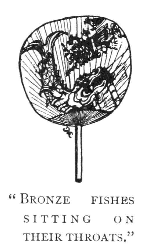 In almost every home are Japanese fans, in our shops Japanese dolls and balls and other knick-knacks, on our writing-tables bronze crabs or lacquered pen-tray with outlined on it the extinct volcano [Fuji San][1] that is the most striking mountain seen from the capital of Japan. At many places of amusement Japanese houses of real size have been exhibited, and the jargon of fashion for "Japanese Art" even reaches our children's ears.