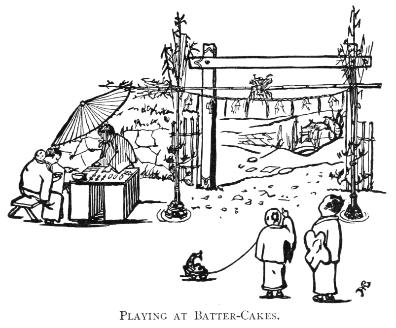 In the original work, the money and distances, the comparisons and illustrations, were naturally English, and not American. For this reason, I have ventured[Pg vi] to alter the text slightly here and there, that the American child reader may more clearly catch the drift of the thought, have given to each Japanese word the standard spelling now preferred by scholars and omitted statements of fact which were once, but are no longer, true. I have also translated or omitted hard Japanese words, shortened long sentences, rearranged the illustrations, and added notes which will make the subject clearer. Although railways, telegraphs, and steamships, clothes and architecture, schools and customs, patterned more or less closely after those in fashion in America and Europe, have altered many things in Japan and caused others to disappear, yet the children's world of toys and games and stories does not change very fast. In the main, it may be said, we have here a true picture of the old Japan which we all delighted in seeing, when, in those sunny days, we lived in sight of Yedo Bay and Fuji Yama, with Japanese boys and girls all around us.
