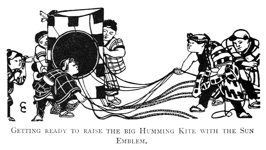 Little Good Boy had just finished eating the last of five rice cakes called "dango," that had been strung on a skewer of bamboo and dipped in soy sauce, when he said to his little sister, called Chrysanthemum:—