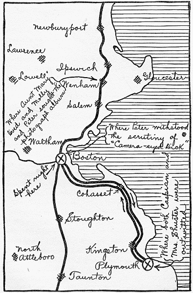 I wrote you yesterday morning, after Pat went home to the boxful of sand and jewels which not even Larry was to know about. The note I wrote to Peter Storm had been left at his lodgings, so when he returned he would know that he was wanted at our house. The trouble was, we had no idea when he would return; and that poor child Pat was trembling in her extremely high-heeled shoes (she never wears boots to tremble in) lest Caspian should reappear upon the scene. I hardly dared hope that the letter Jack had sent to Mr. Strickland's office would reach Peter; but it was that which did the trick. Mr. Strickland was the lawyer he had been consulting about his complicated affairs, and when the note arrived, Mr. S. knew where to send it. No sooner was it read, than Peter bolted from New York to Long Island, and had the happy thought of coming to see us, to pick up the latest news from the front. I was so pleased to see him walk in, I could almost have kissed him! But I didn't[Pg 365] stop to talk long. I ordered Hiawatha, and dashed off to fetch Pat. I was afraid if I merely sent for her, something might happen to keep the girl at home, or Caspian might have turned up, and insist on coming with her.