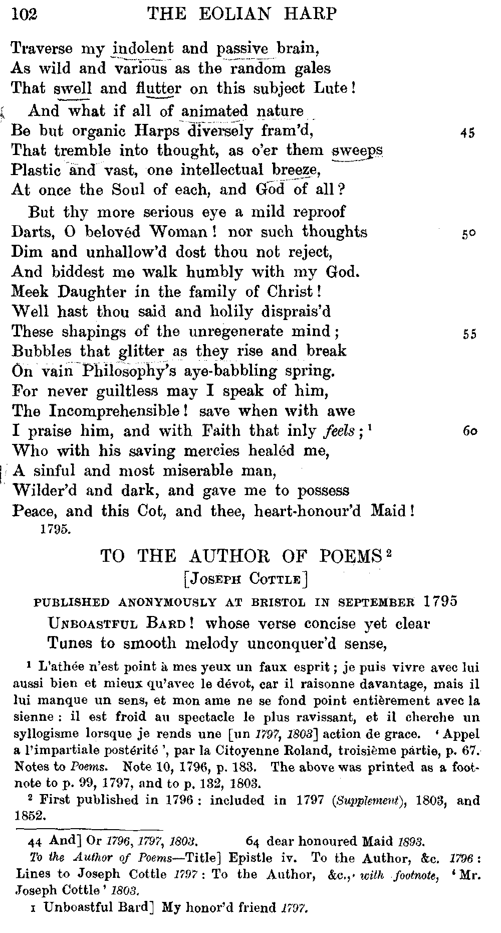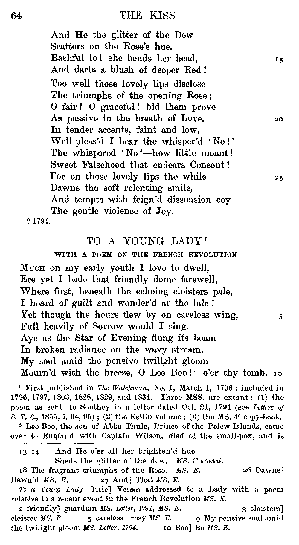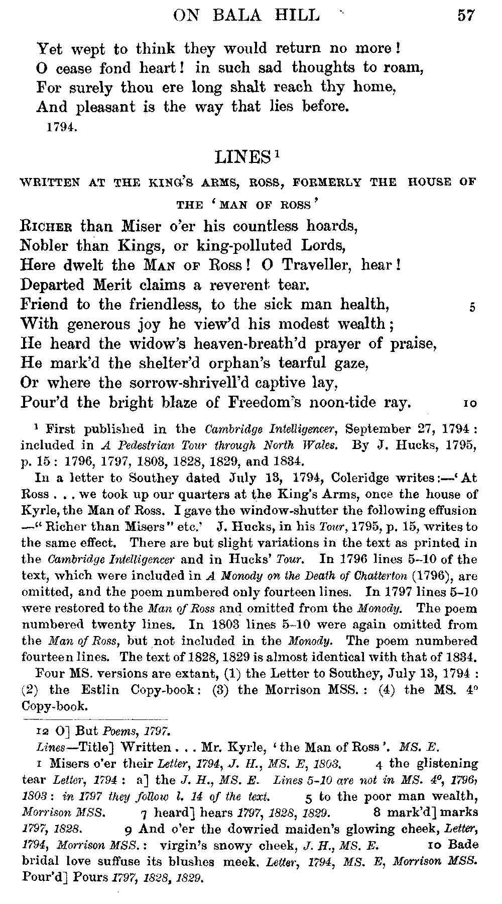 conclusive proof that, here and there, Coleridge altered and emended the