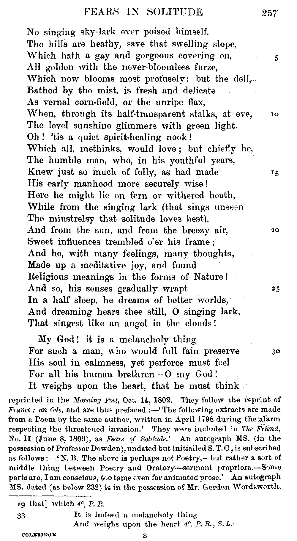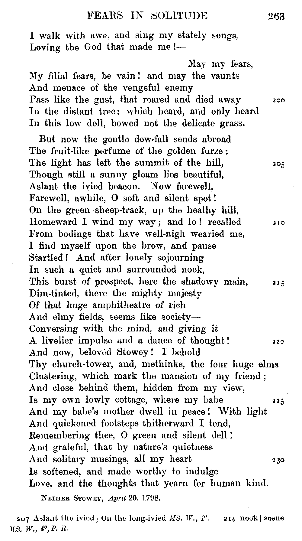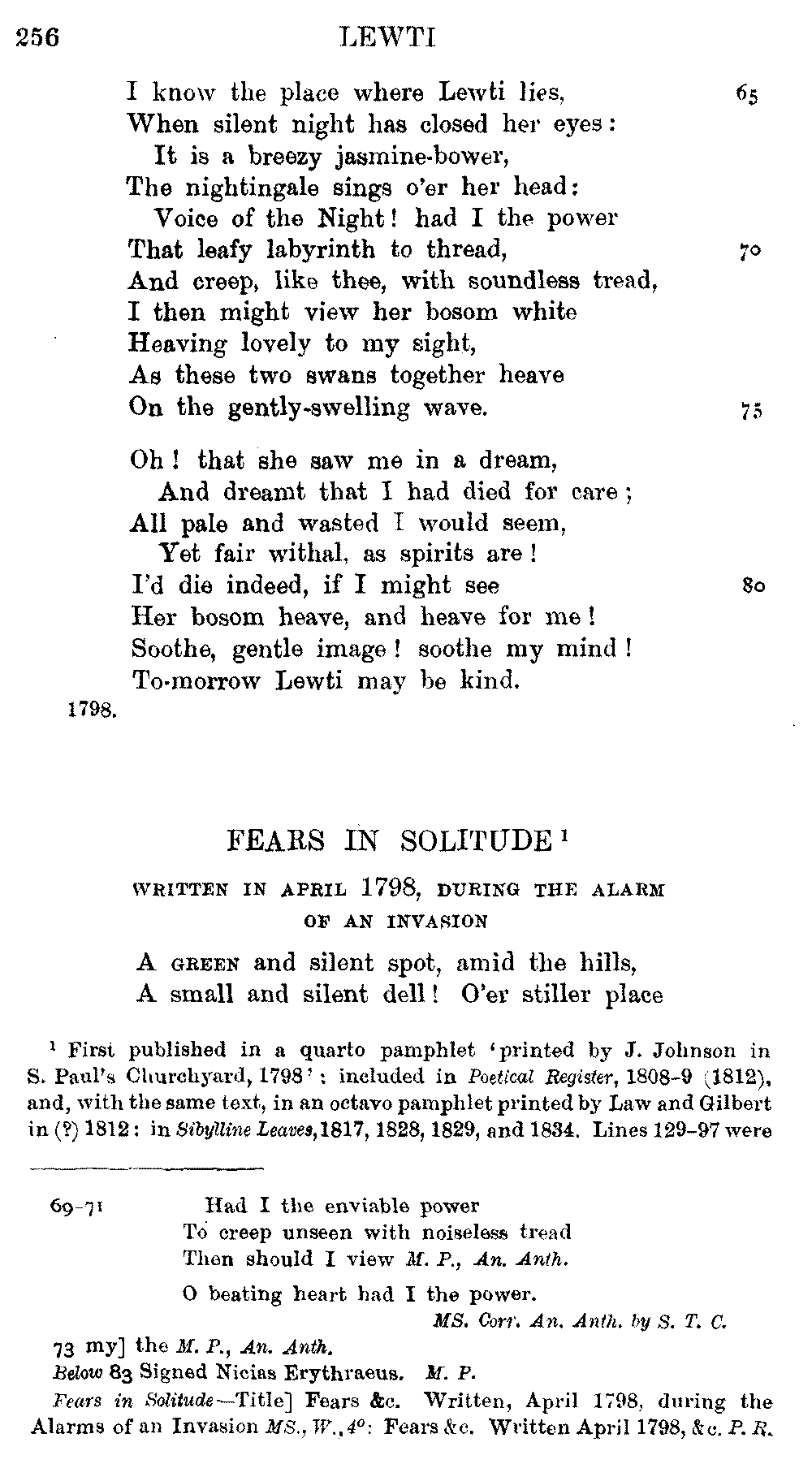 page 256: Title] Fears &c. Written, April 1798, during the Alarms of