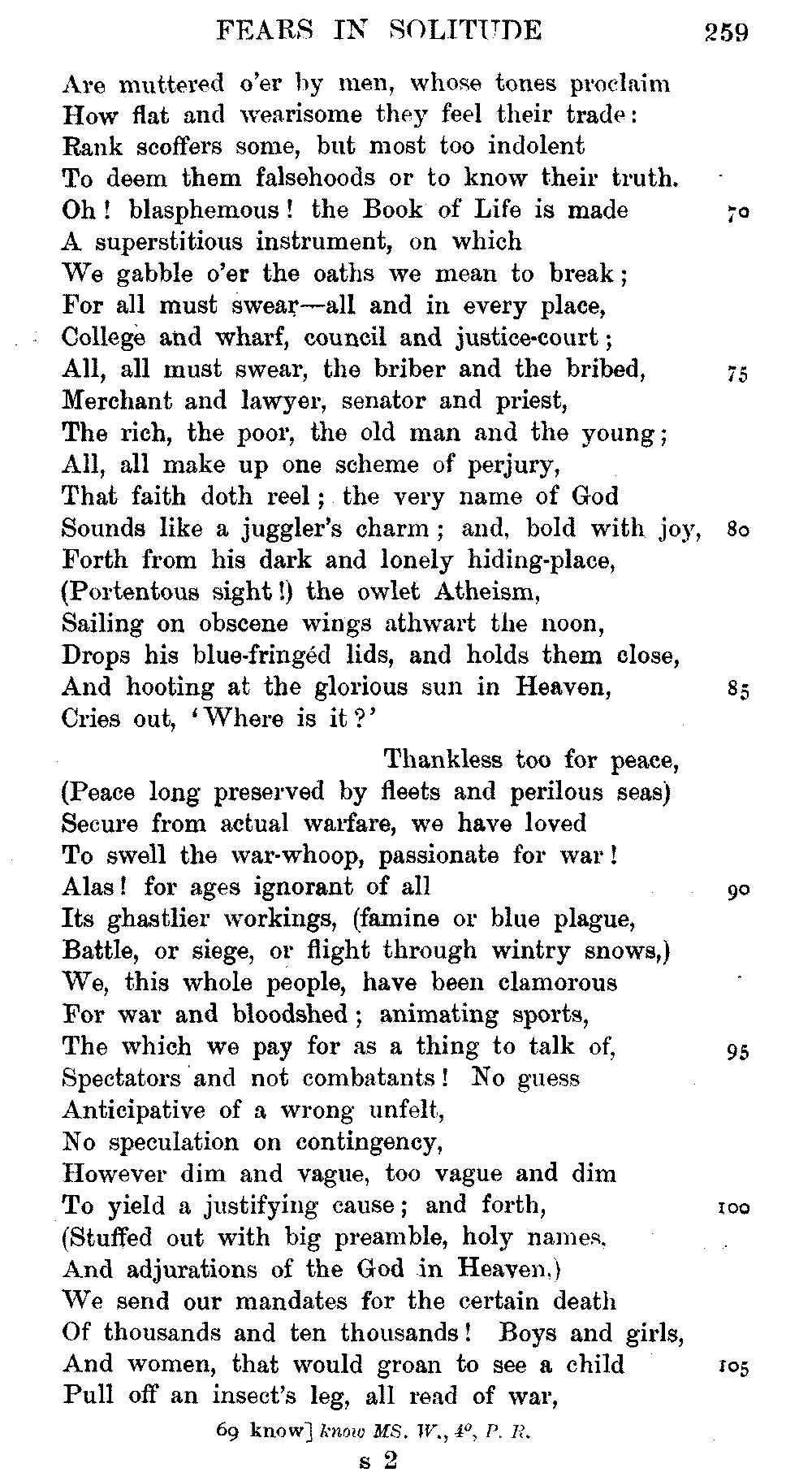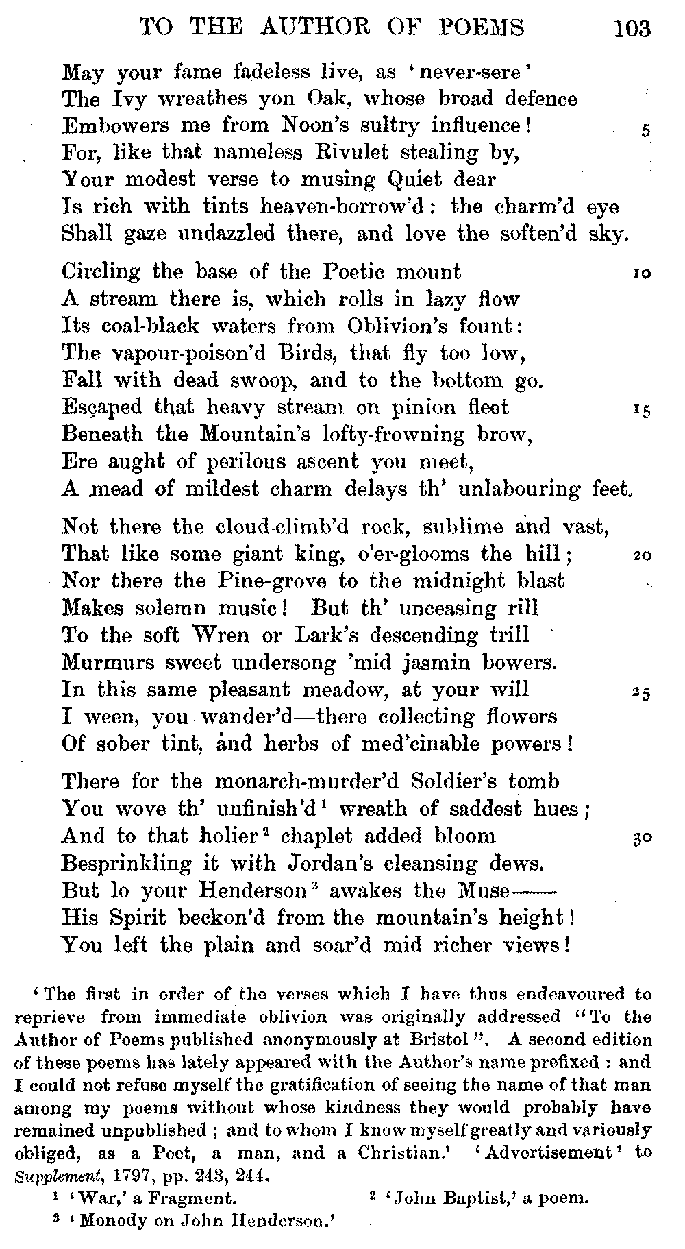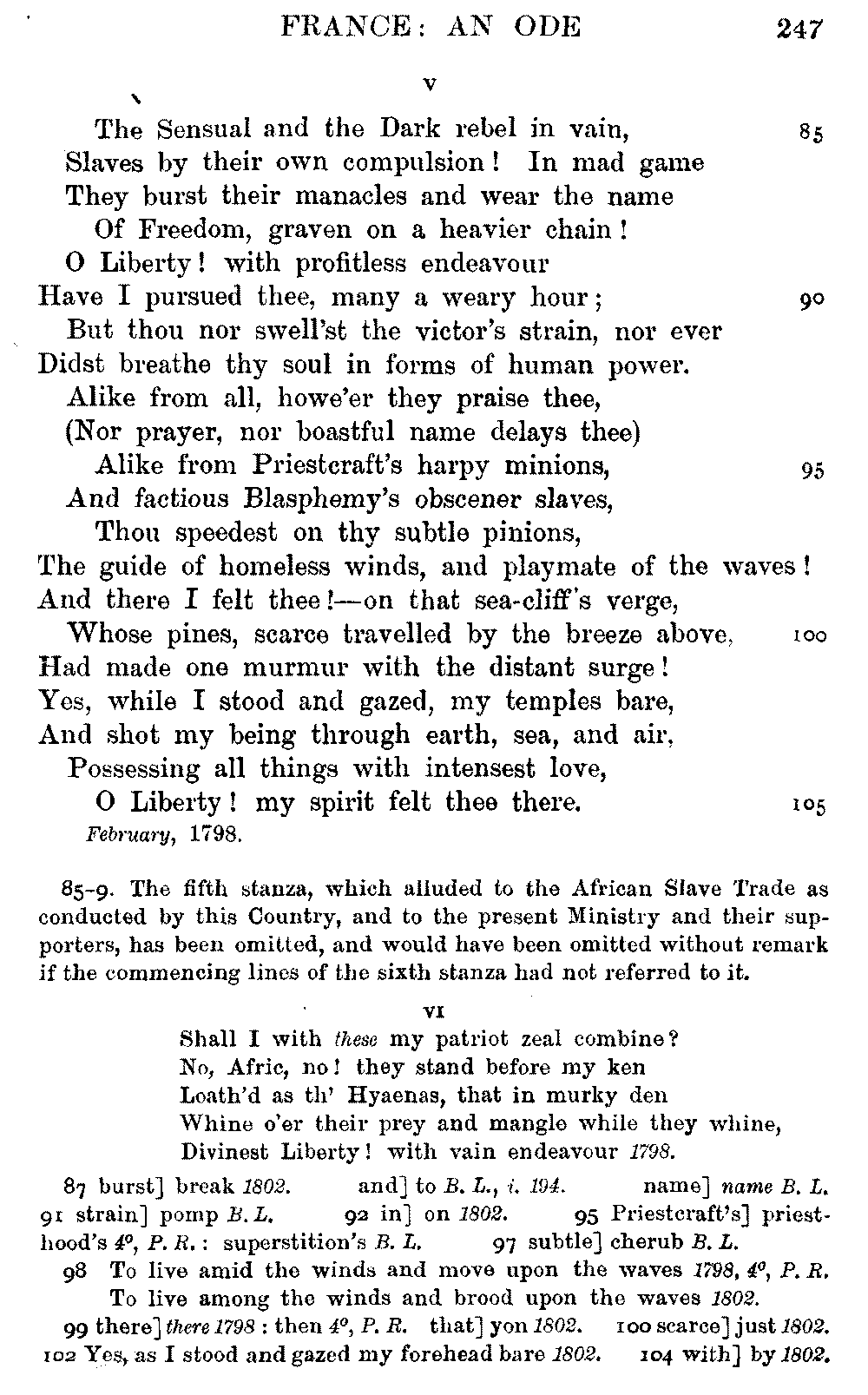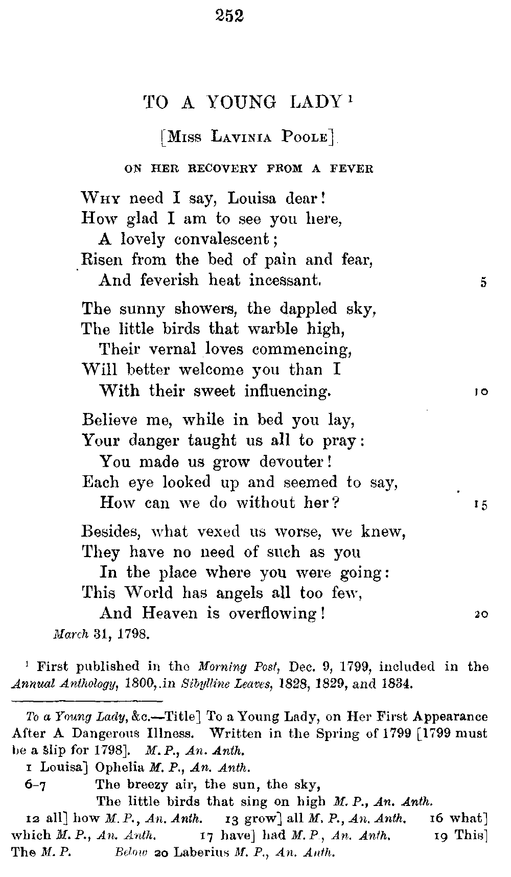 page 256: Title] Fears &c. Written, April 1798, during the Alarms of