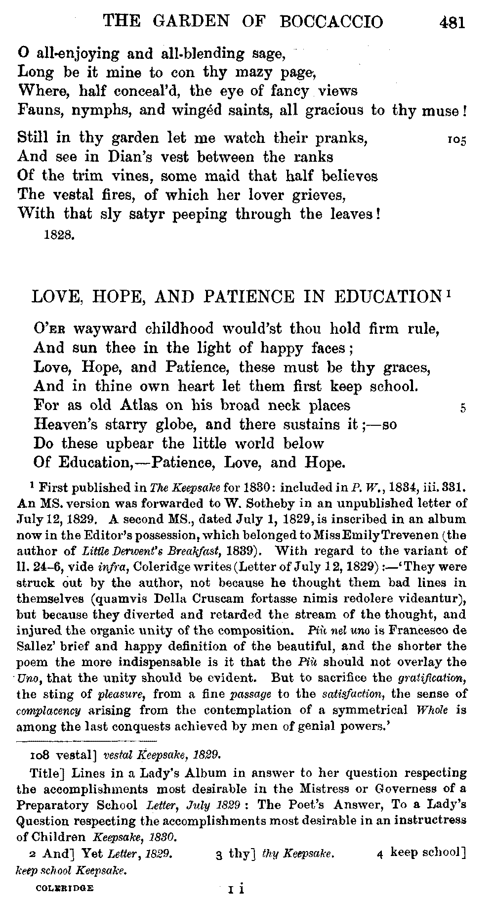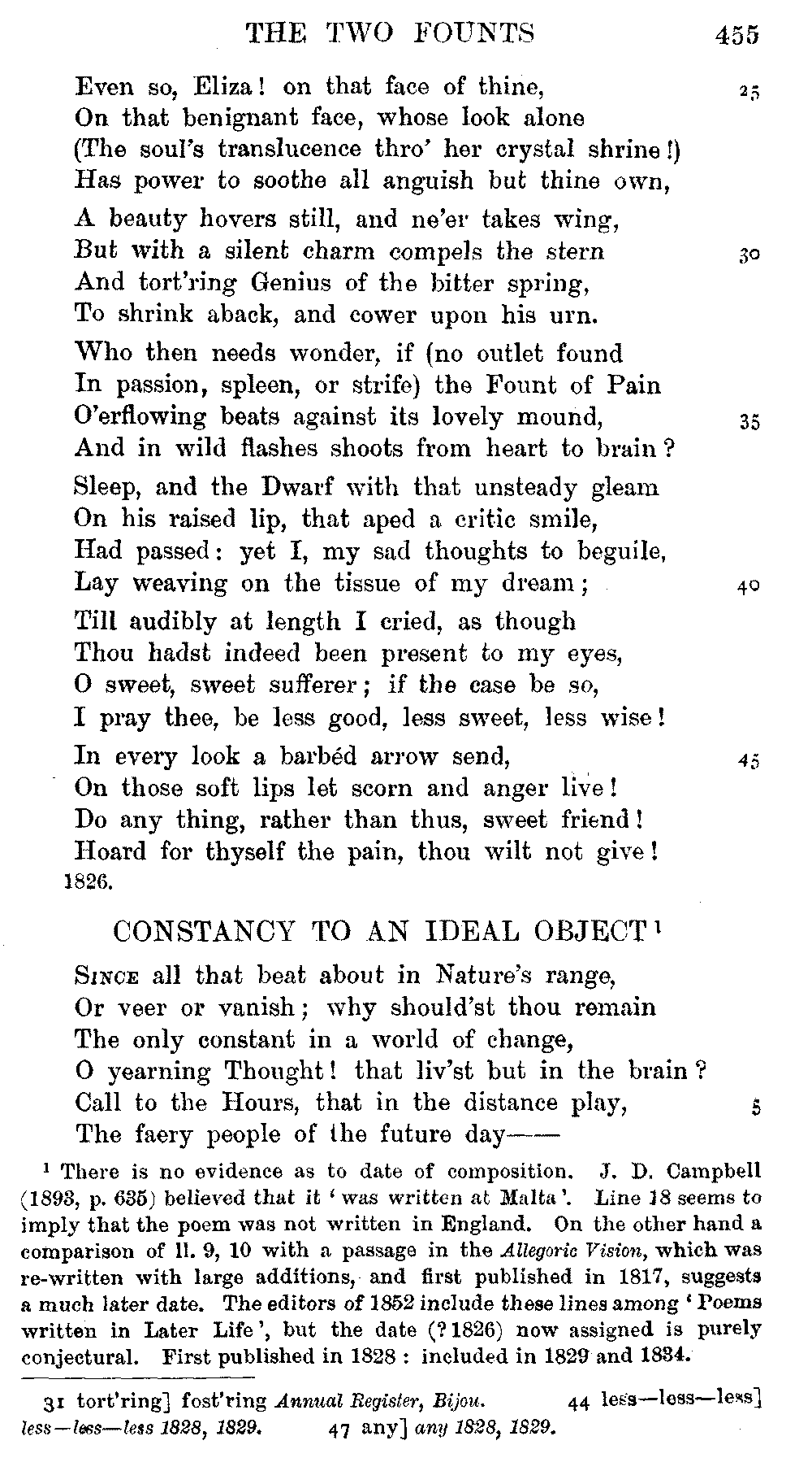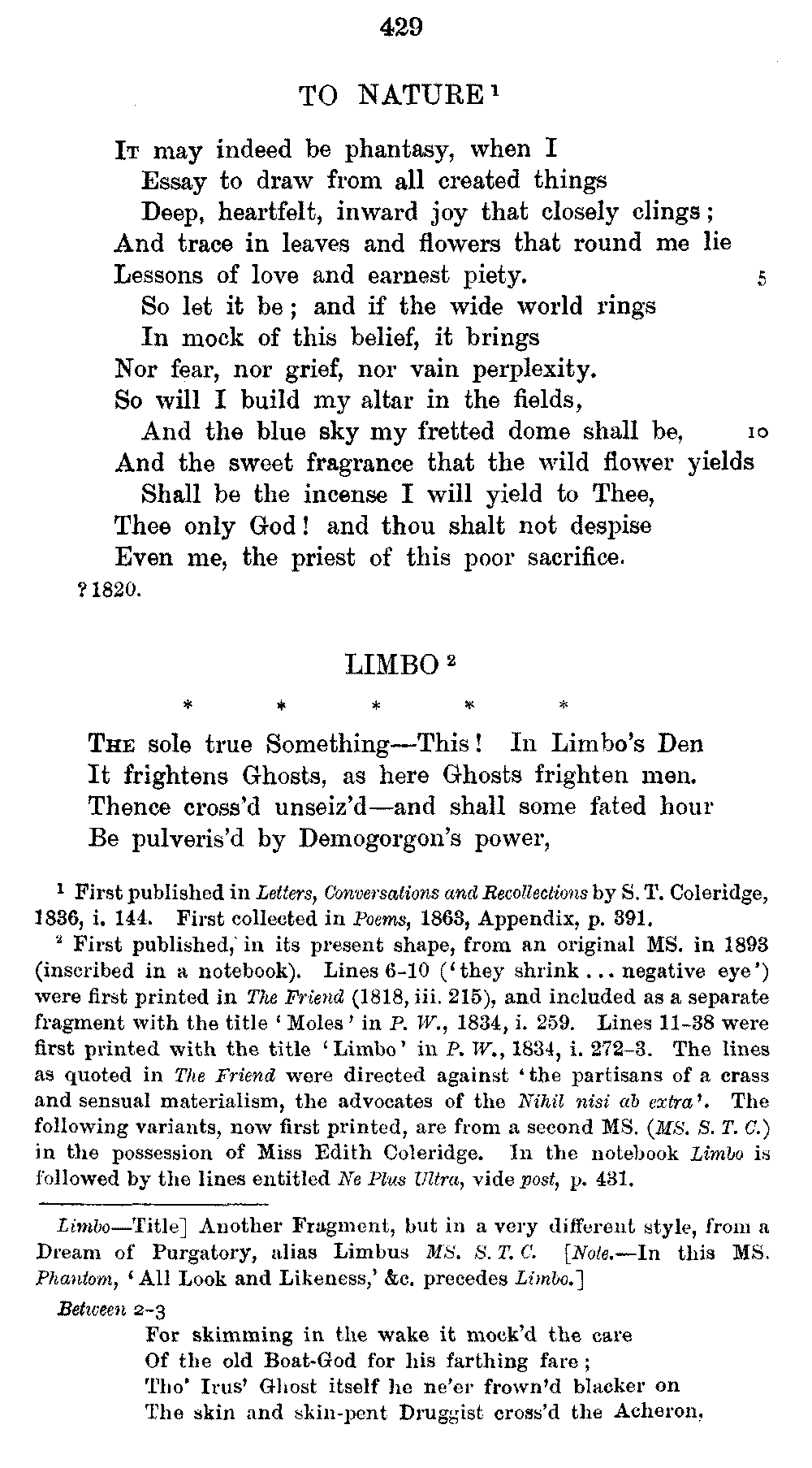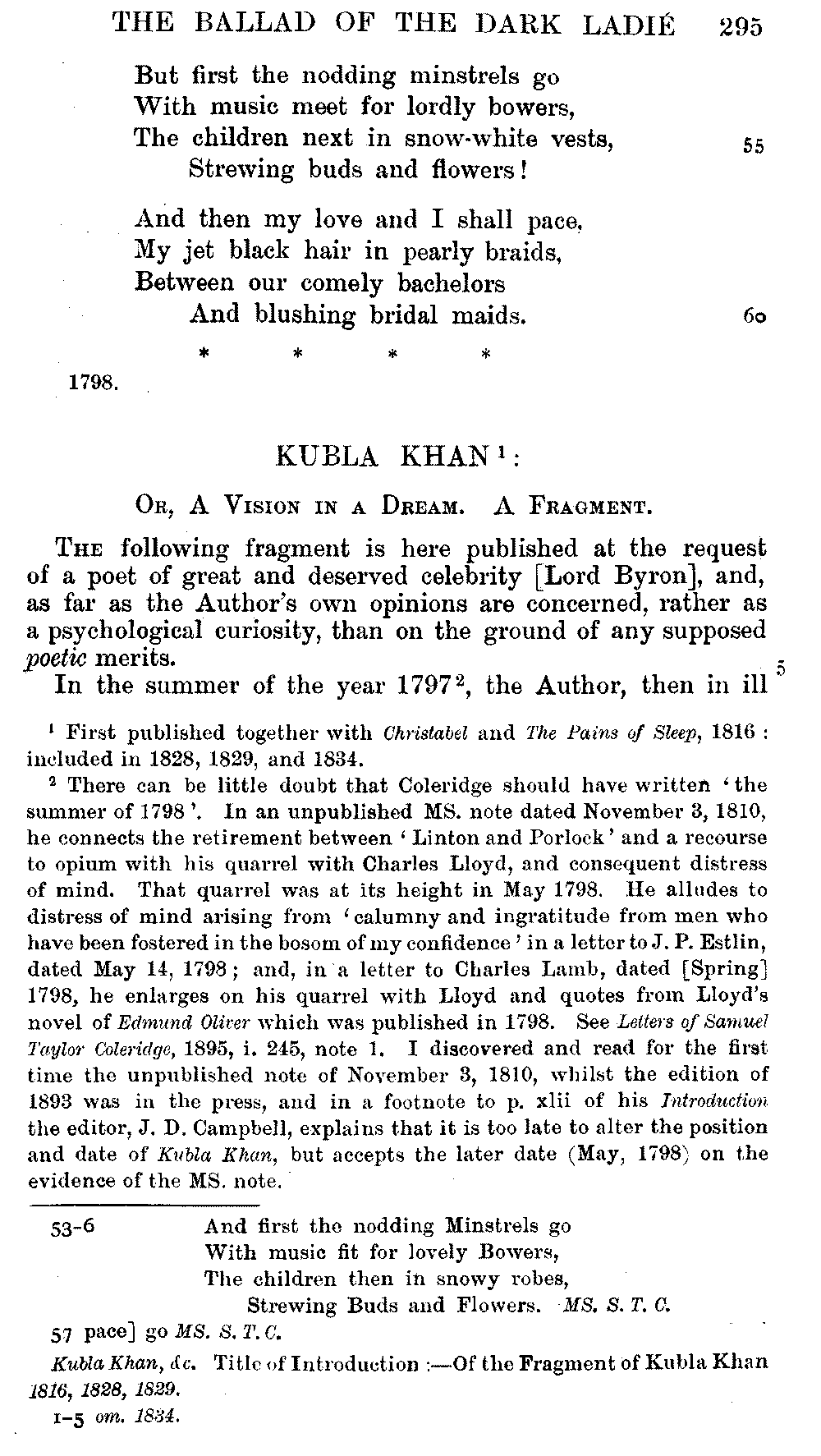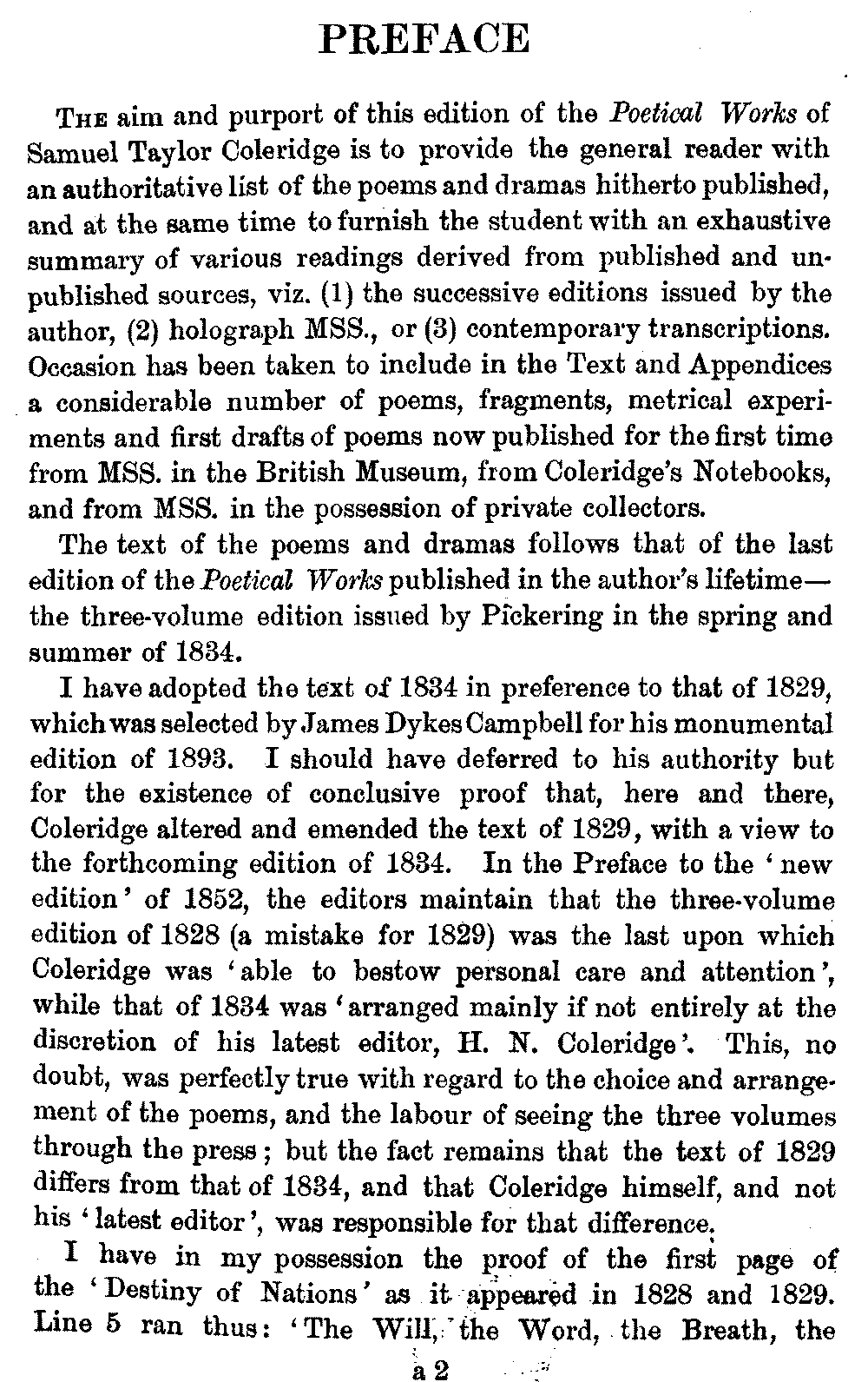the text of 1829 differs from that of 1834, and that Coleridge himself,