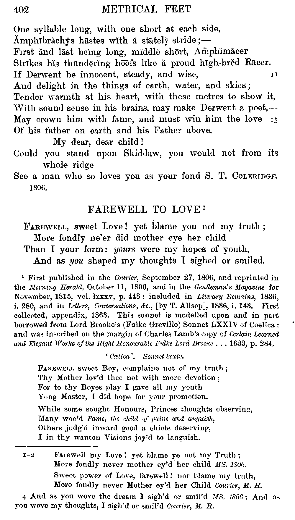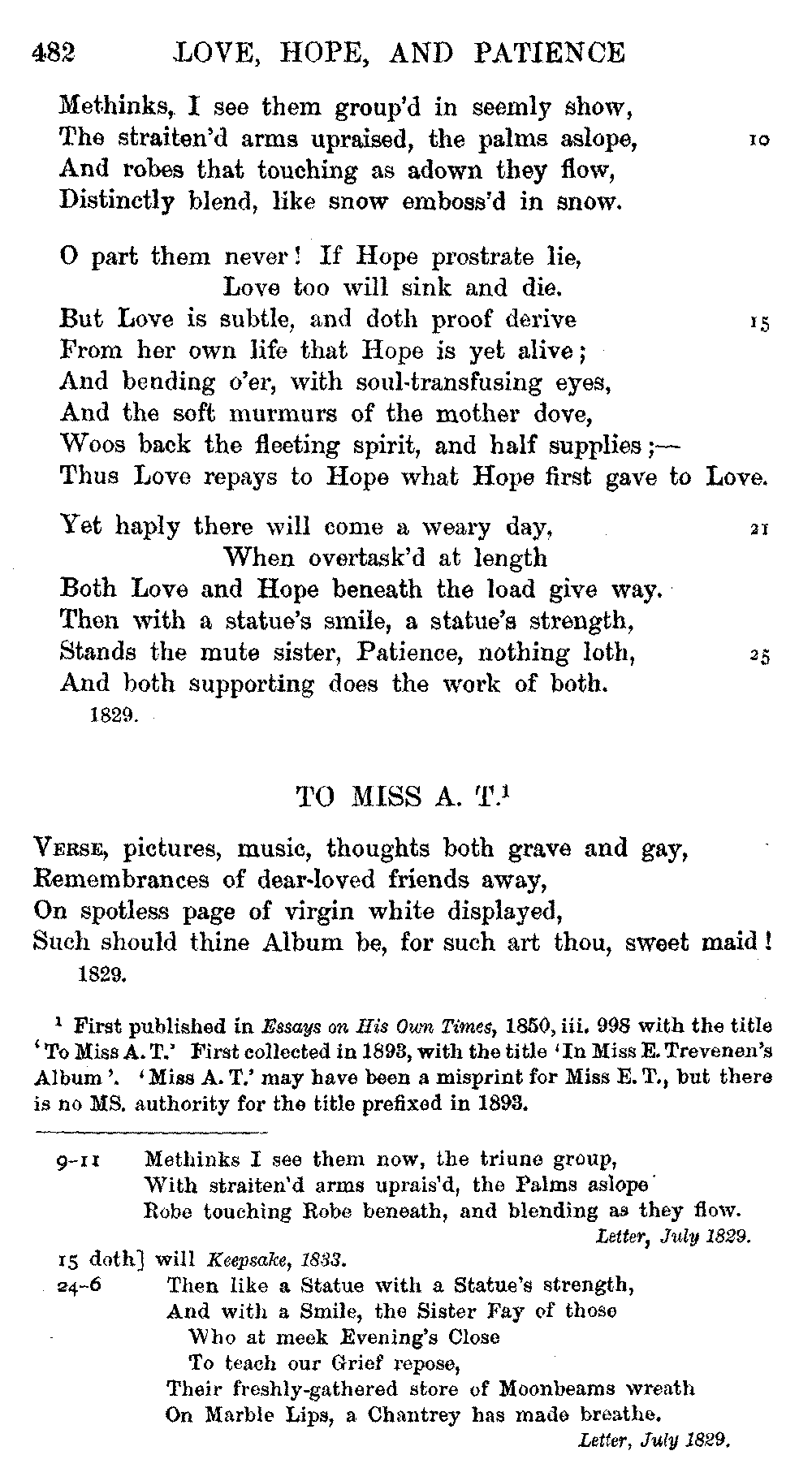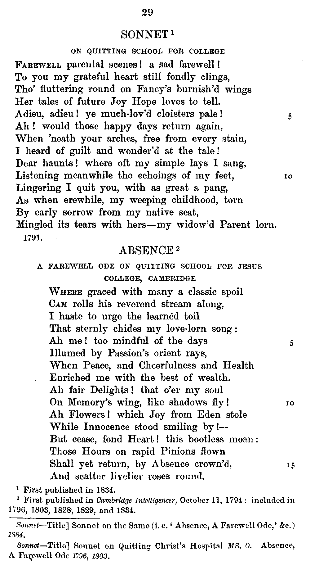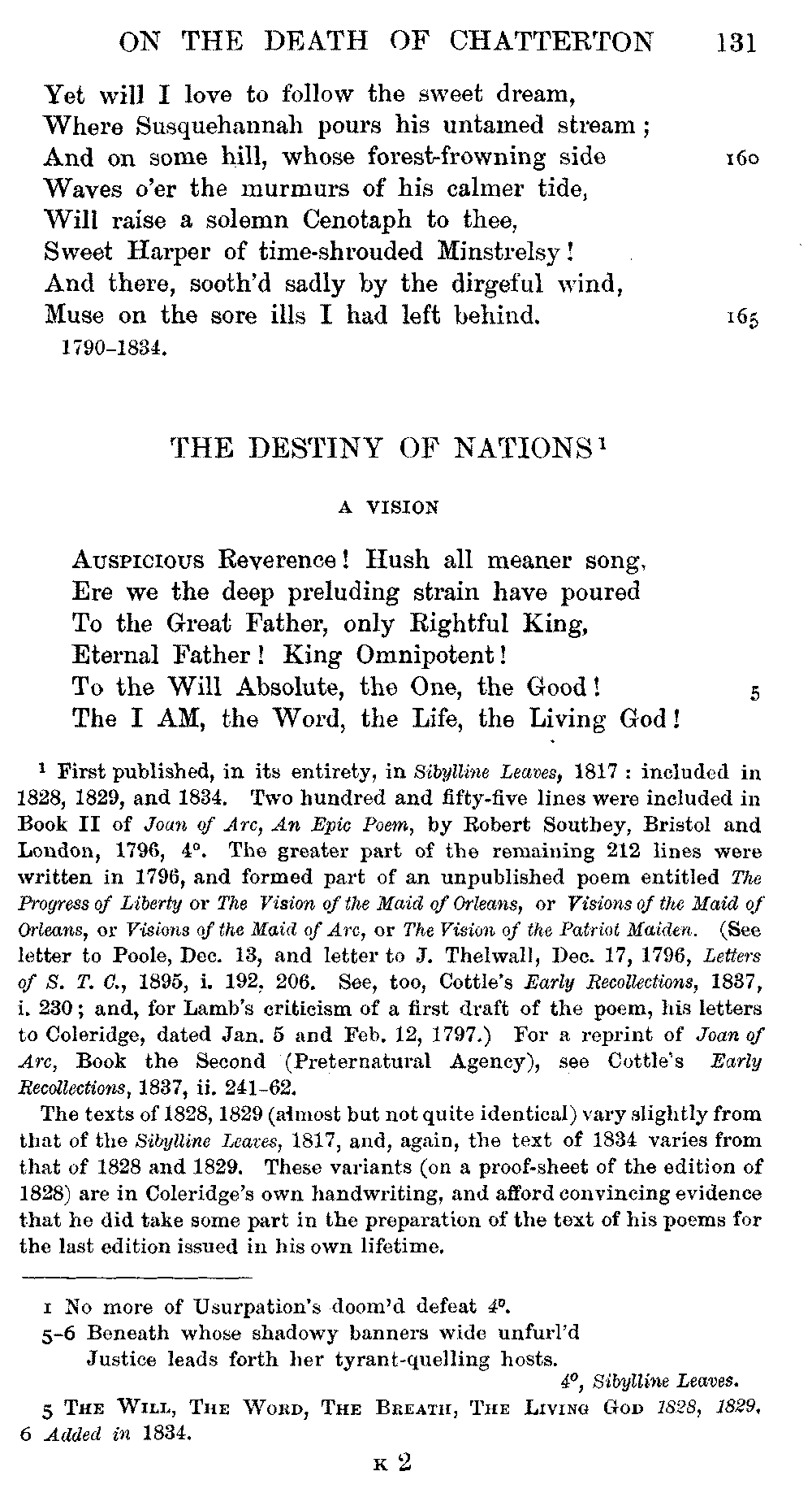 the text of 1829 differs from that of 1834, and that Coleridge himself,