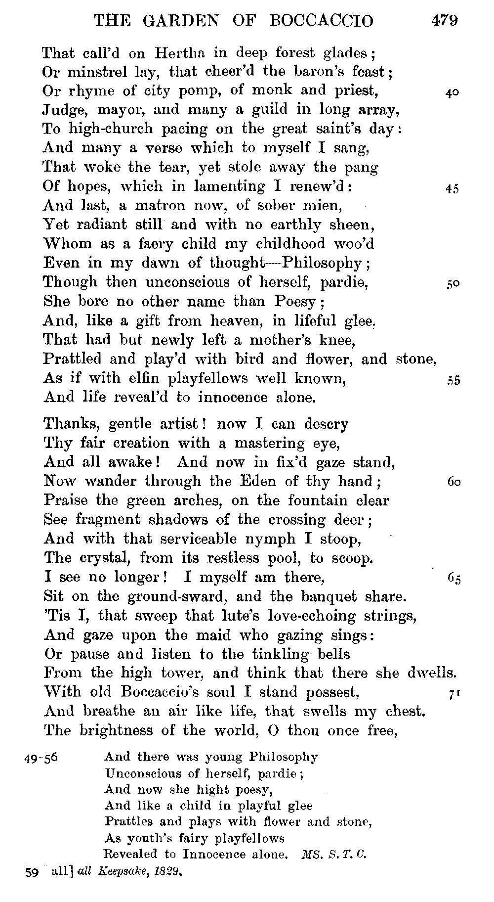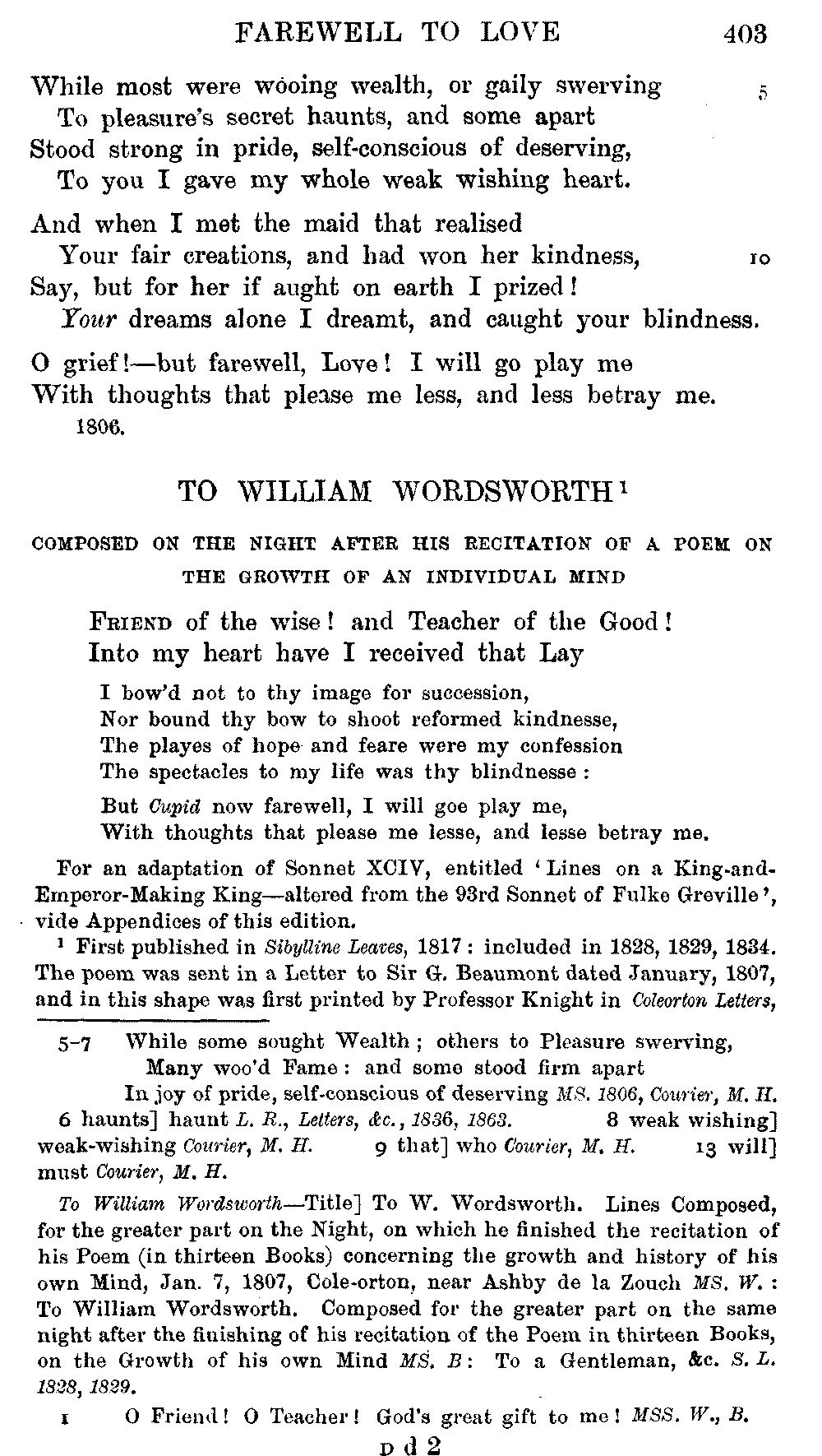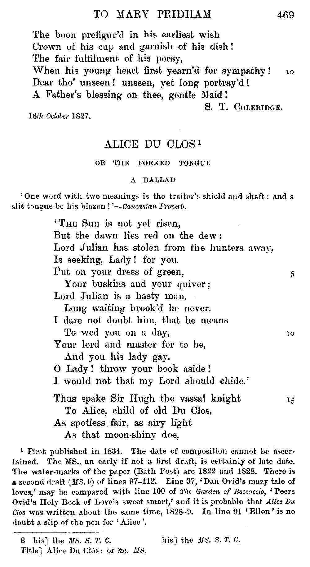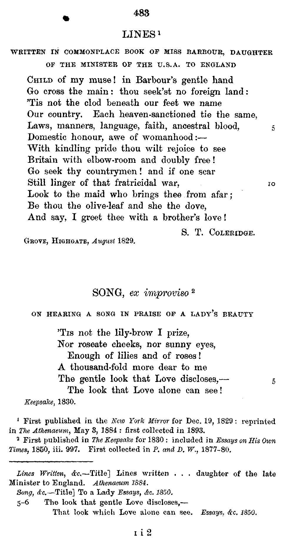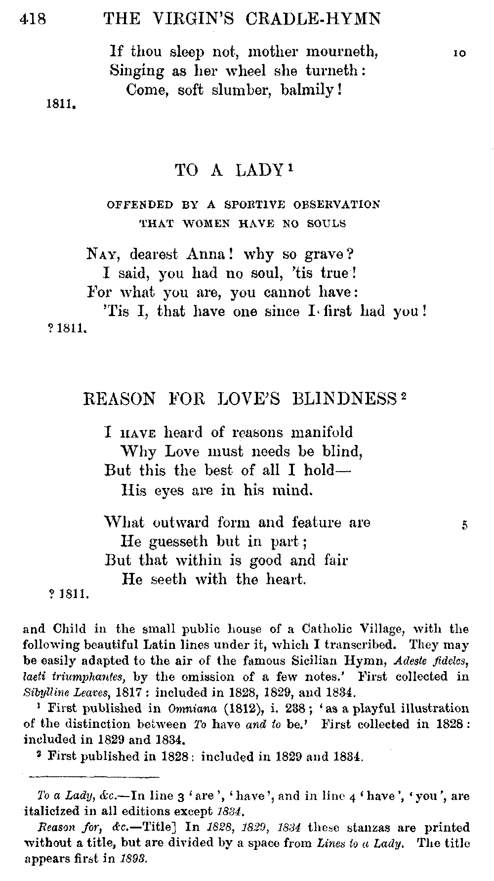the text of 1829 differs from that of 1834, and that Coleridge himself,