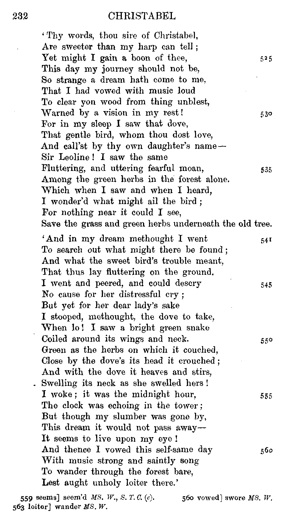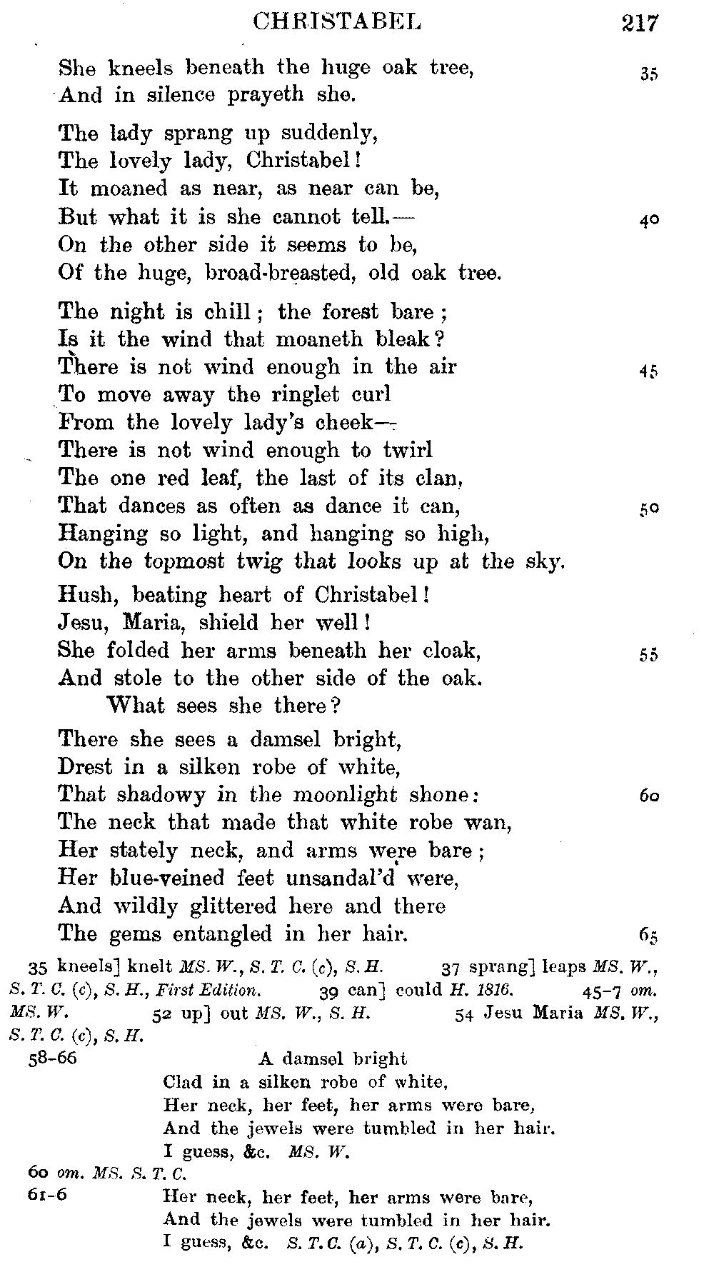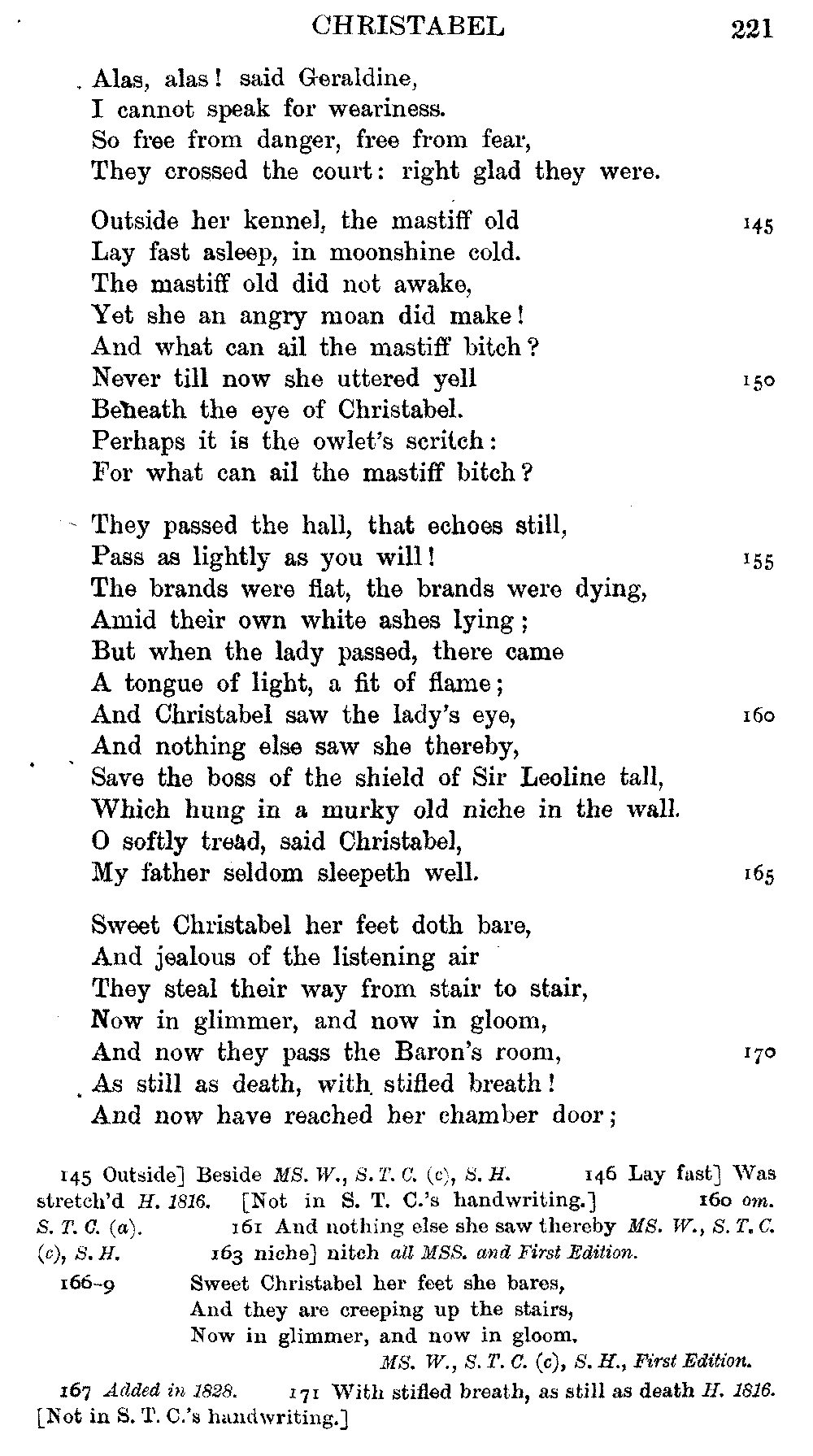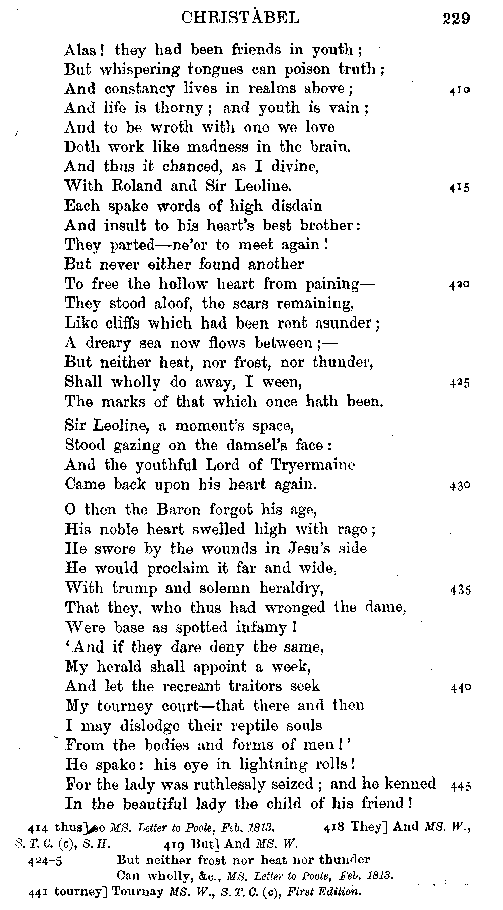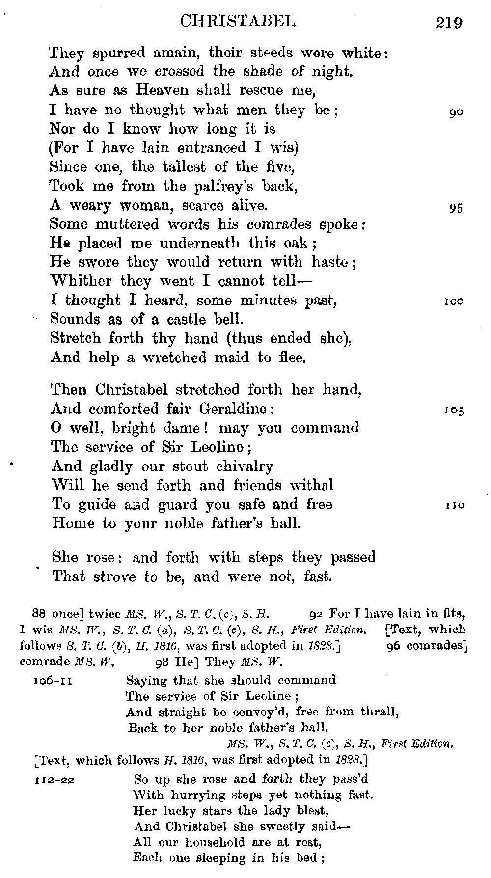 readings of 1829 and all previous editions. Again, in 'Christabel' lines