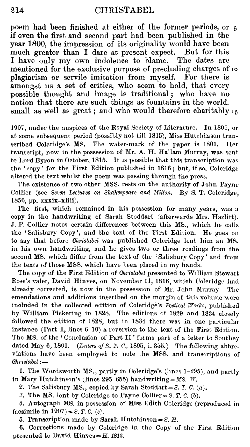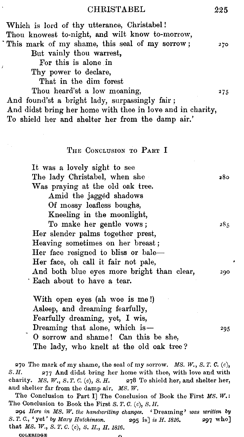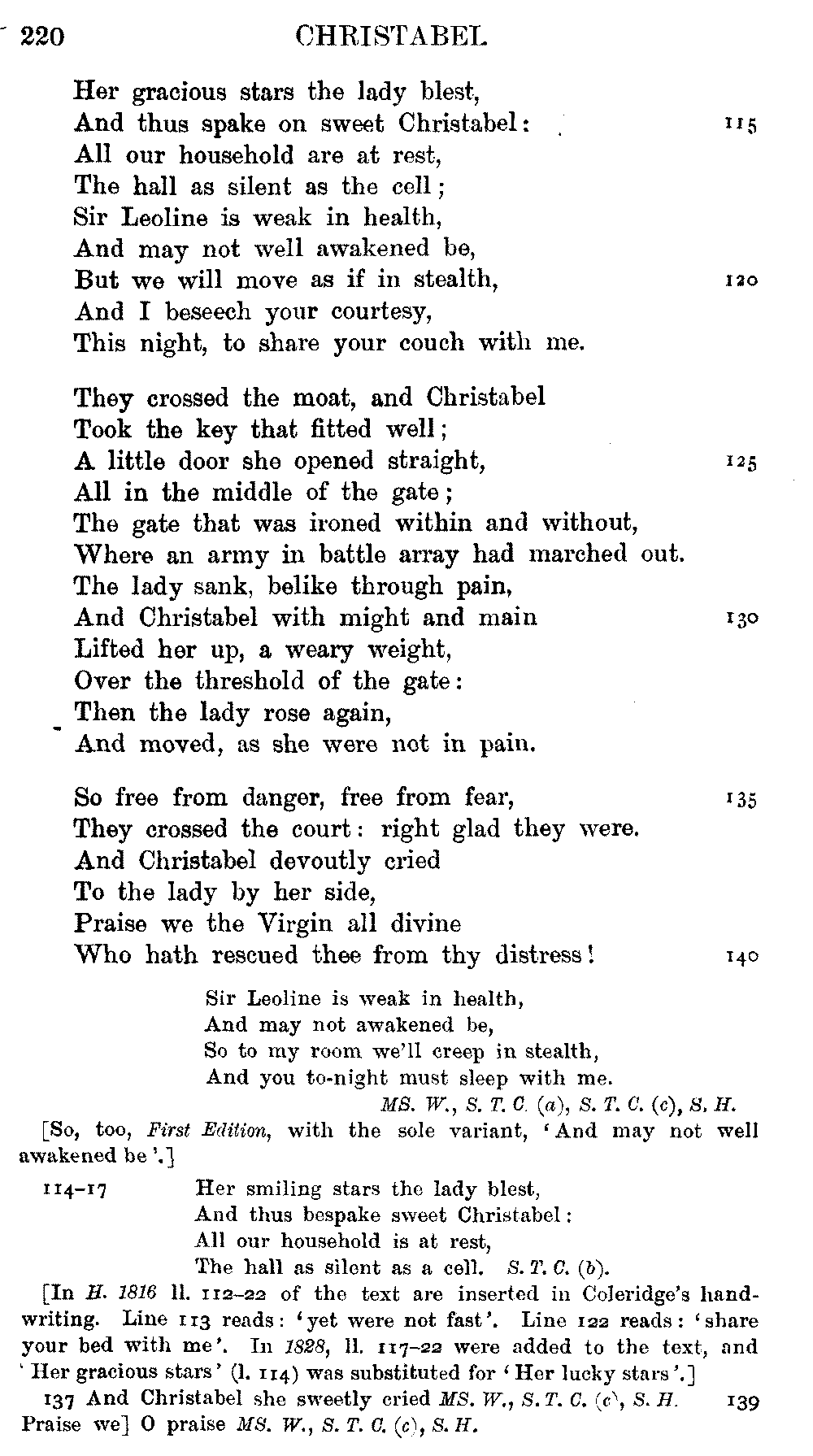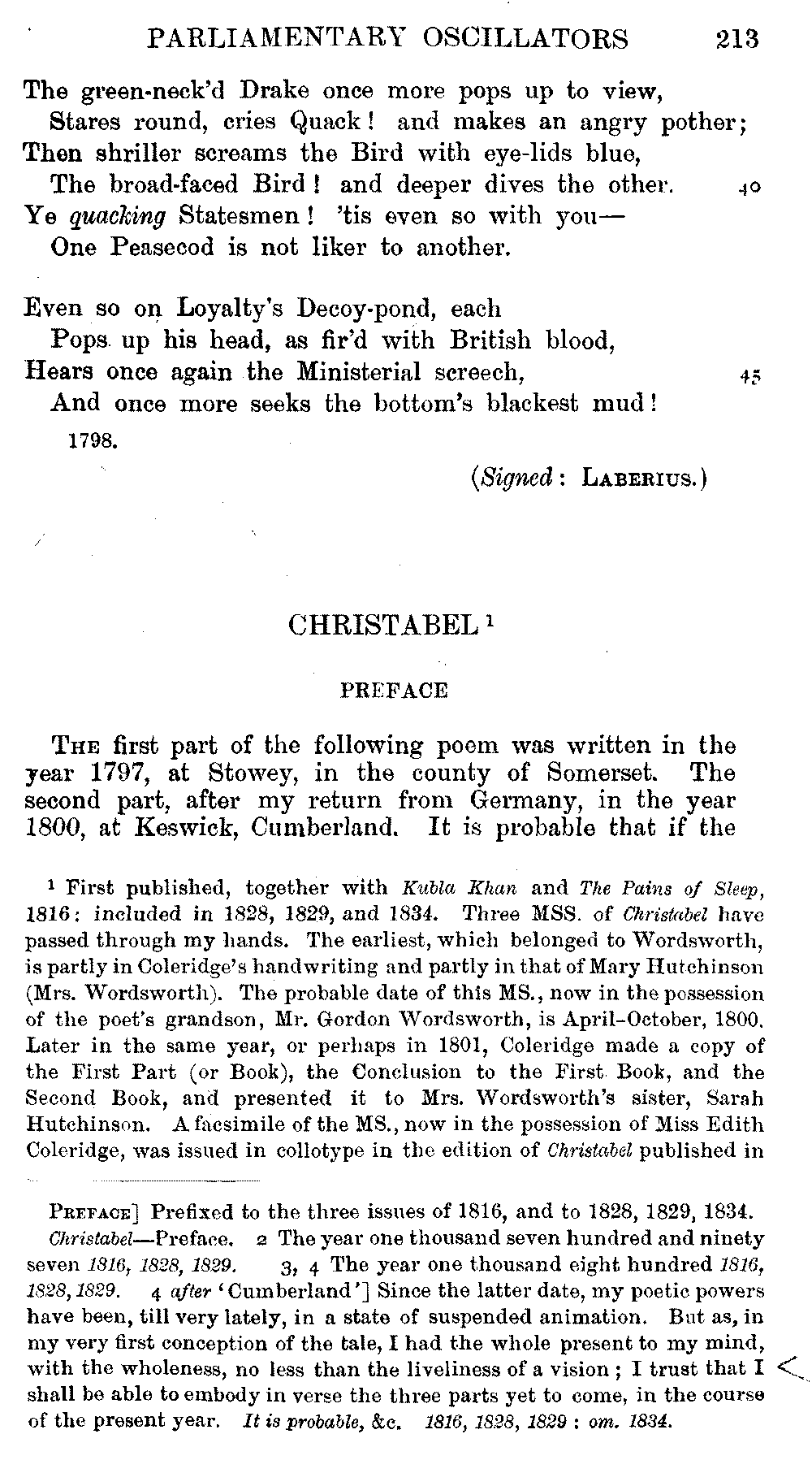 readings of 1829 and all previous editions. Again, in 'Christabel' lines