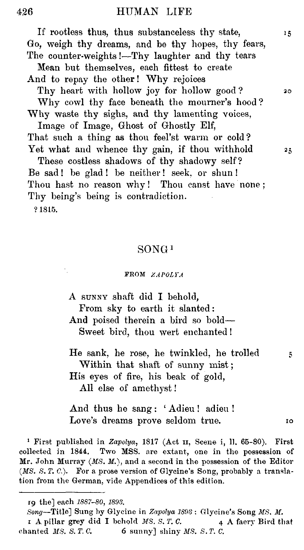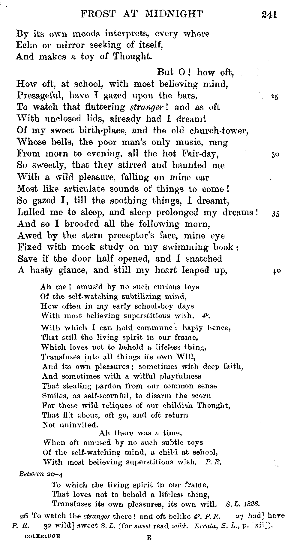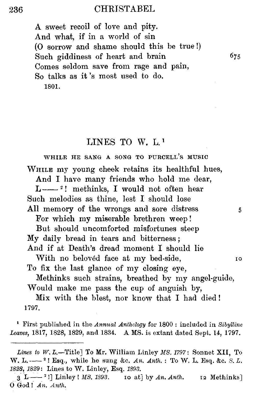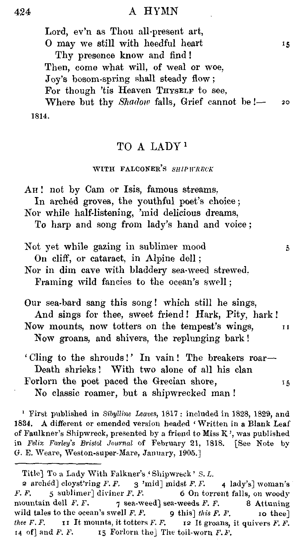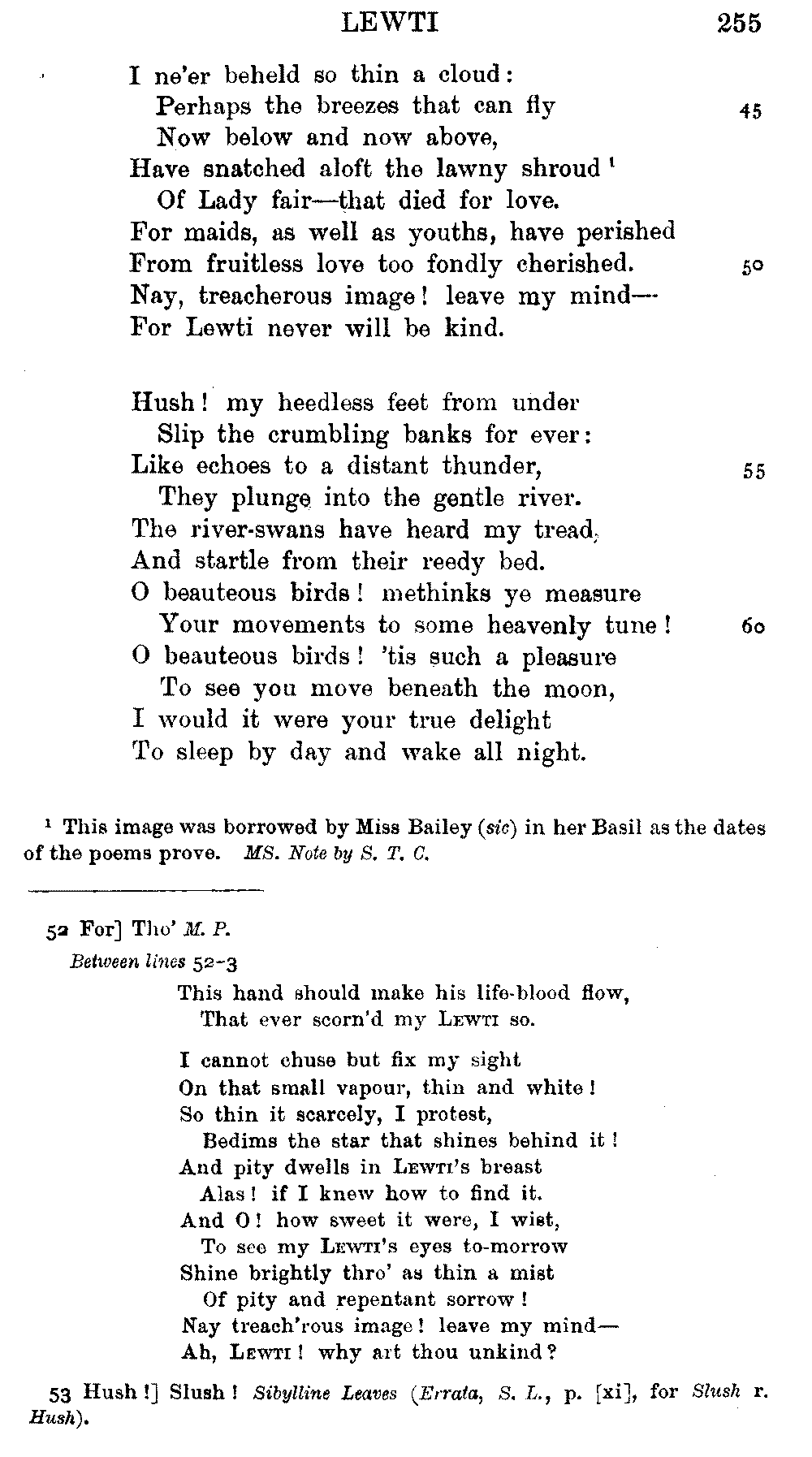 readings of 1829 and all previous editions. Again, in 'Christabel' lines