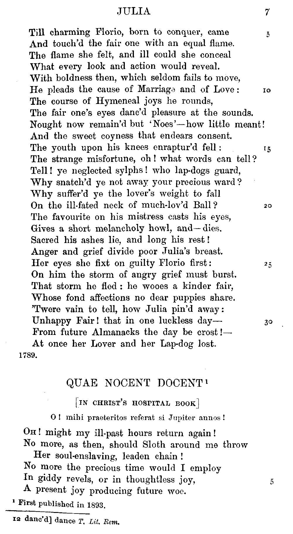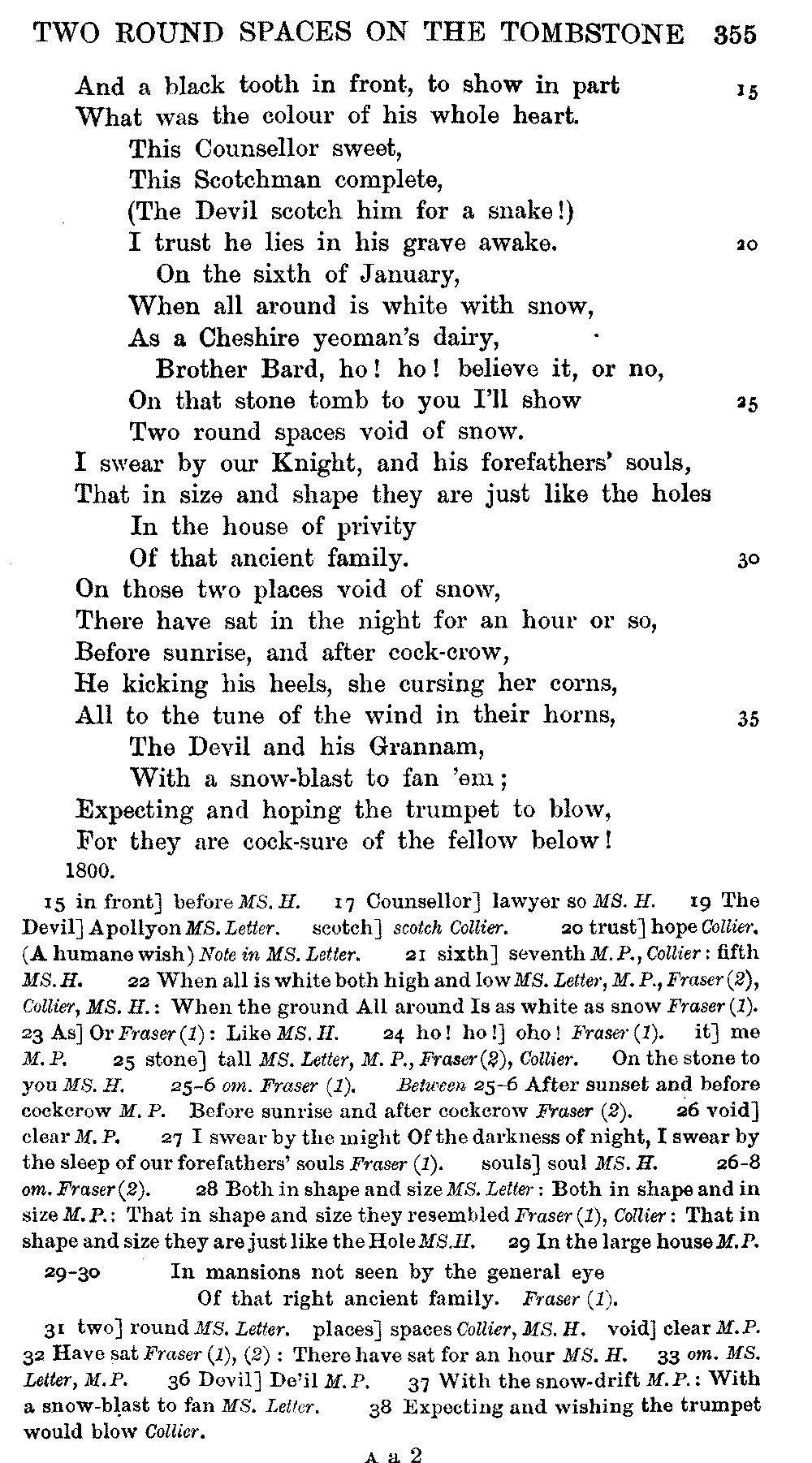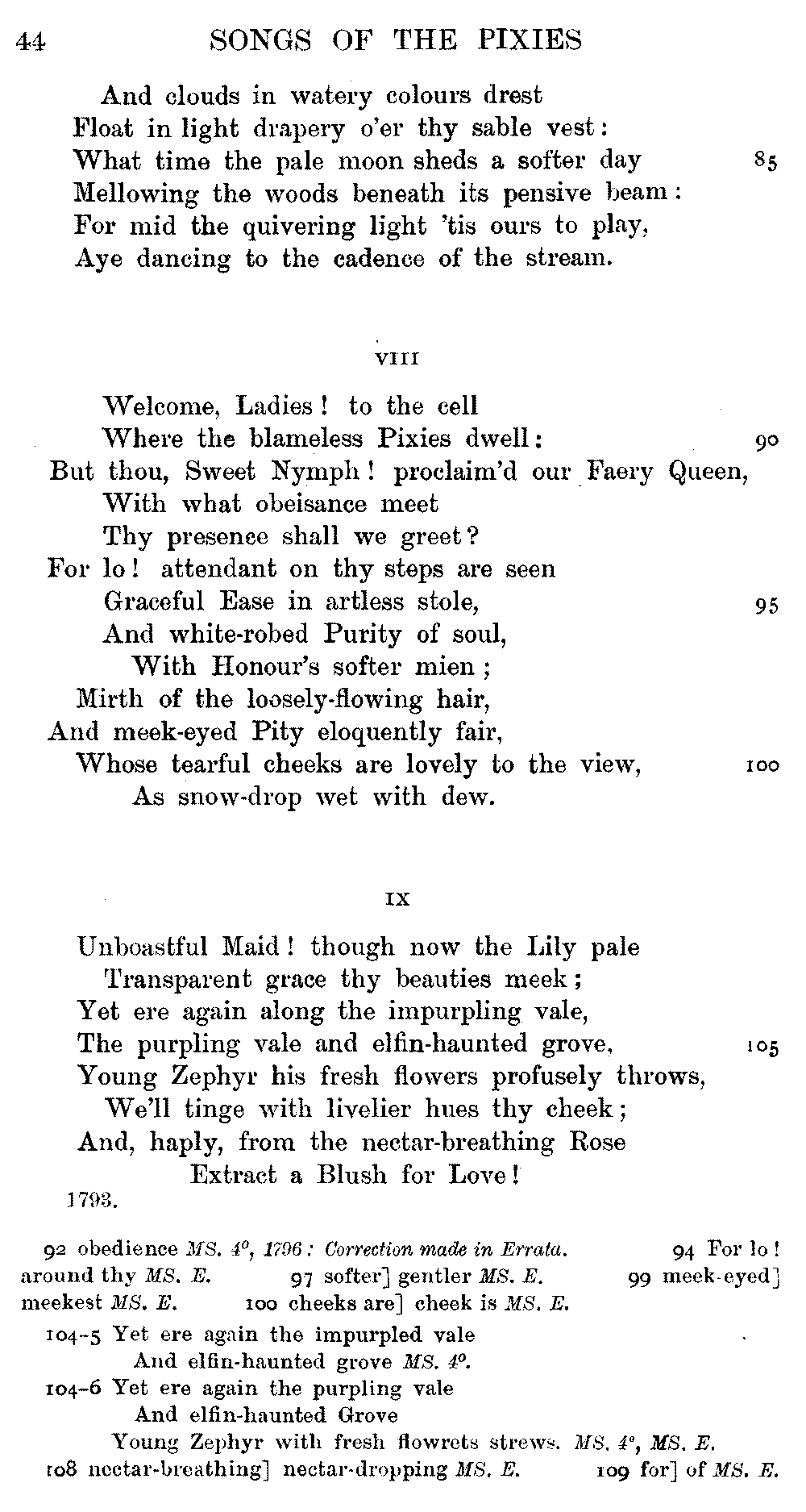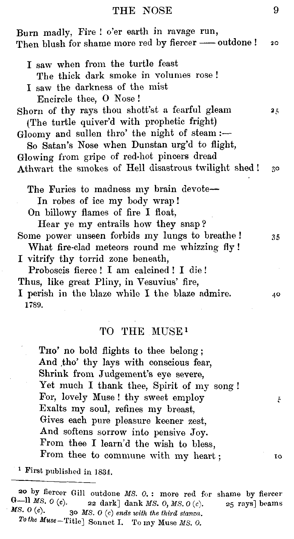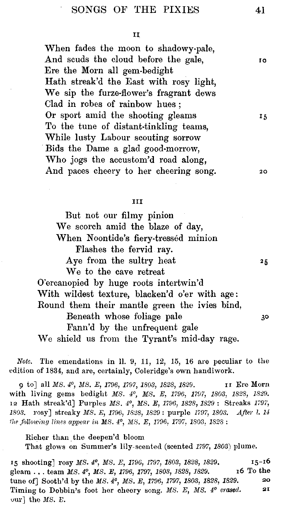 Pixies', lines 9, 11, 12, 15, 16, as printed in 1834, differ from the