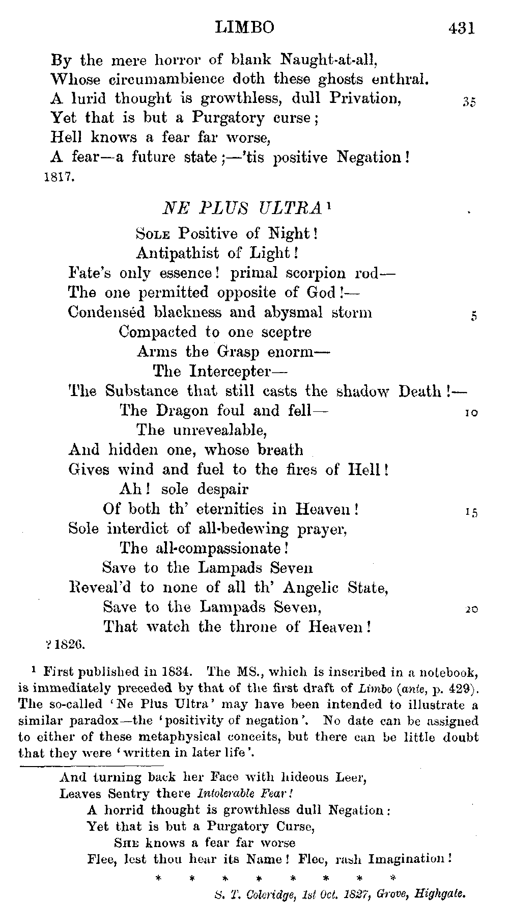 inconceivable that in Coleridge's lifetime and while his pen was still