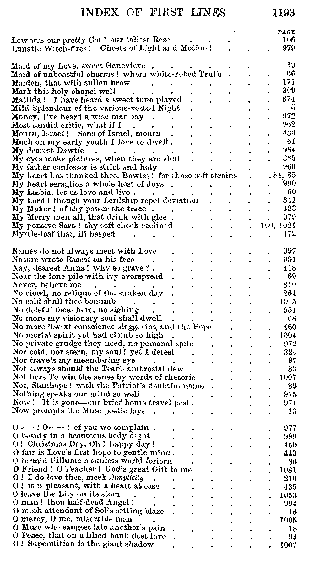 Transcriber has copied the Index of First Lines from the end of Vol. II