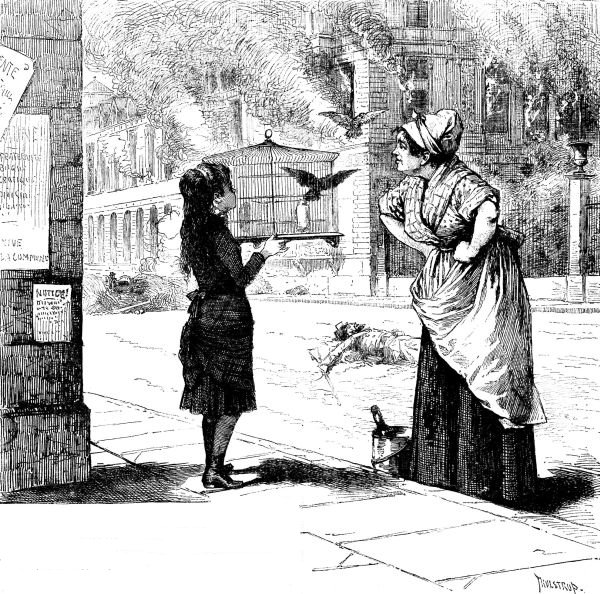 On hearing these cruel words little Claudine began to comprehend for the first time the greatness of the danger. She drew back, darted a look of reproach at the vile woman who stood laughing at her trouble, and then, with the big tears rolling down her cheeks, "God will know how to keep them safe," she said, and opened the cage door. The doves flew out. They poised themselves a moment; then they rose into the air, and flew away to seek a purer sky above the clouds of smoke and sulphur. In spite of what the cruel woman said, the doves were saved.