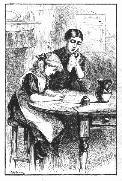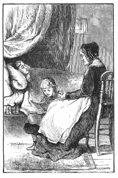 'Yes, mother,' said Poppy; 'here's one on the table.' The poor woman turned over the leaves with trembling fingers, for she was very weak and tired.