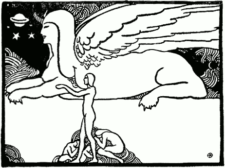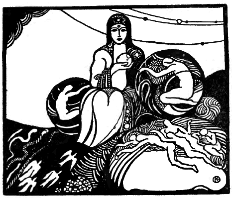 He sits on a rock near his tent and ponders for hours. He seeks in the stars, as it were, a clue to the love of this woman, which he first thought to be unfathomable. There it is, the stars seem to say. And he looks into the sand-grave near him, where little Najib practises how to die. Yes; a fitting symbol of the life and love called modern, boasting of freedom. They dance their dervish dance, these people, even like Khalid’s little Najib, and fall into their sand-graves, and fold their arms and smile: “We are in love––or we are out of it.” Which is the same. No: he’ll have none of this. A heart as simple as this desert sand, as deep in affection as this heaven, untainted by the uncertainties and doubts and caprices of modern life,––only in such a heart is the love that endures, the love divine and eternal.