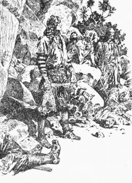 When old Hornigold had looked up he had seen a speck in the vaulted heaven. It was slowly soaring around and around in vast circles, and with each circle coming nearer and nearer to the ground. A pair of keen and powerful eyes were aloft there piercing the distance, looking, searching, in every direction, until at last their glance fell upon the figure upon the rock. The circling stopped. There was a swift rush through the air. A black feathered body passed between the buccaneer and the sun, and a mighty vulture, hideous bird of the tropics, alighted on the sands near by him.