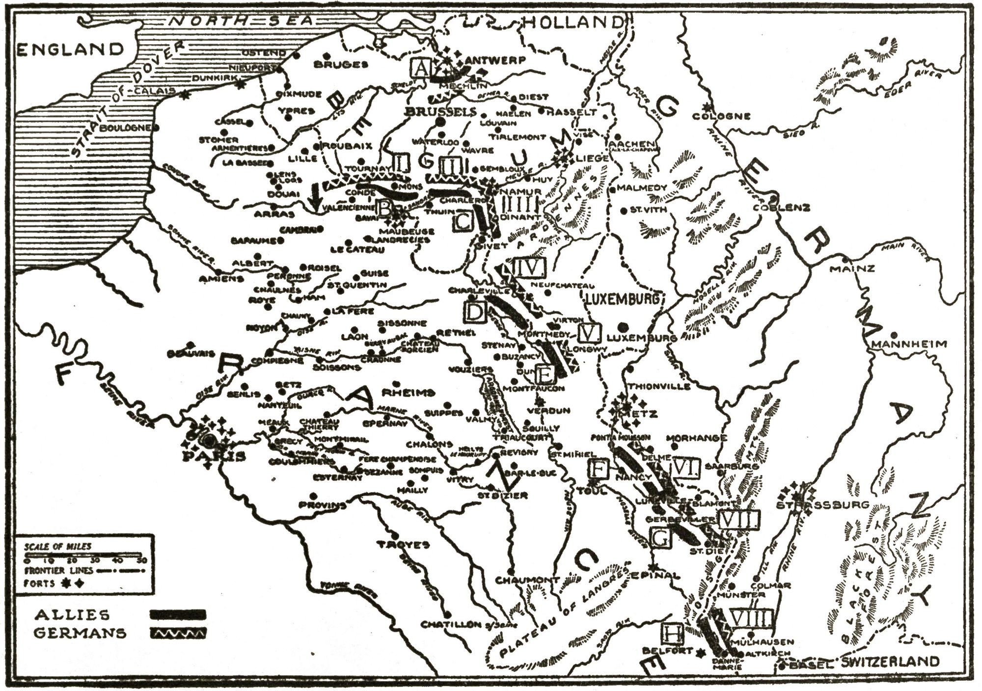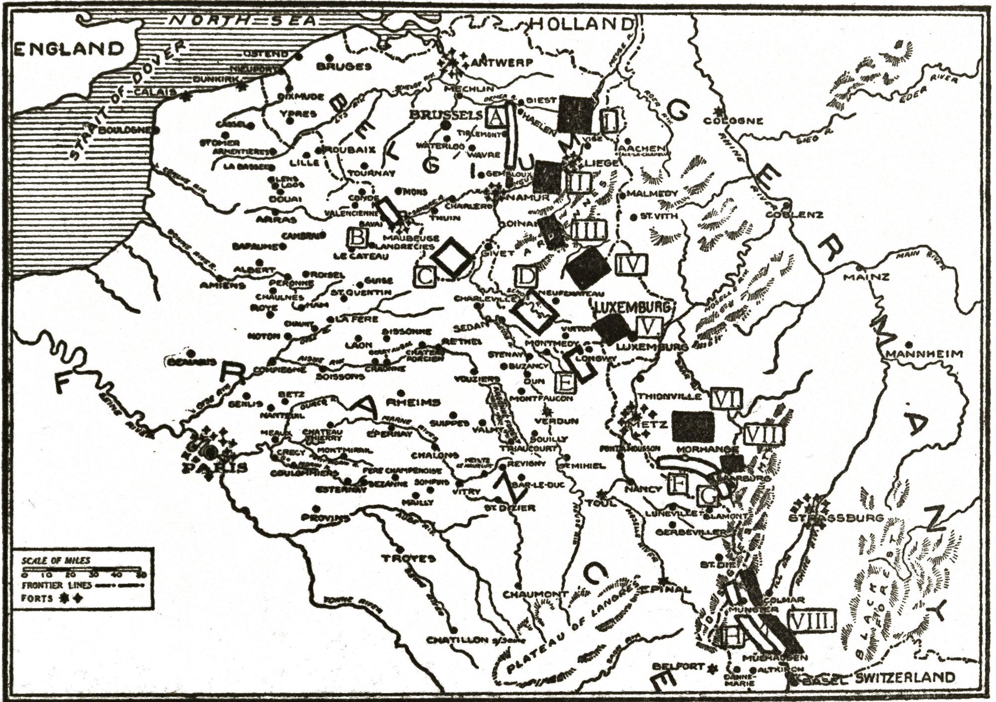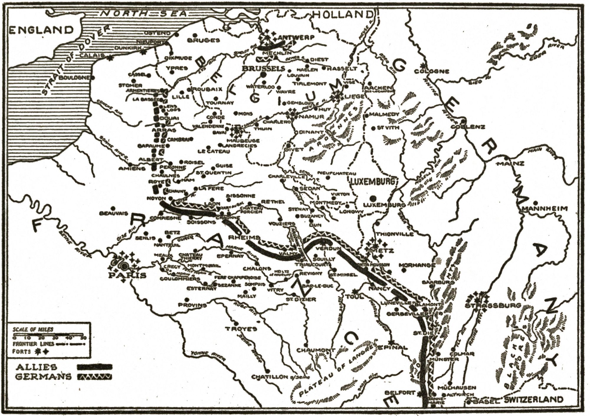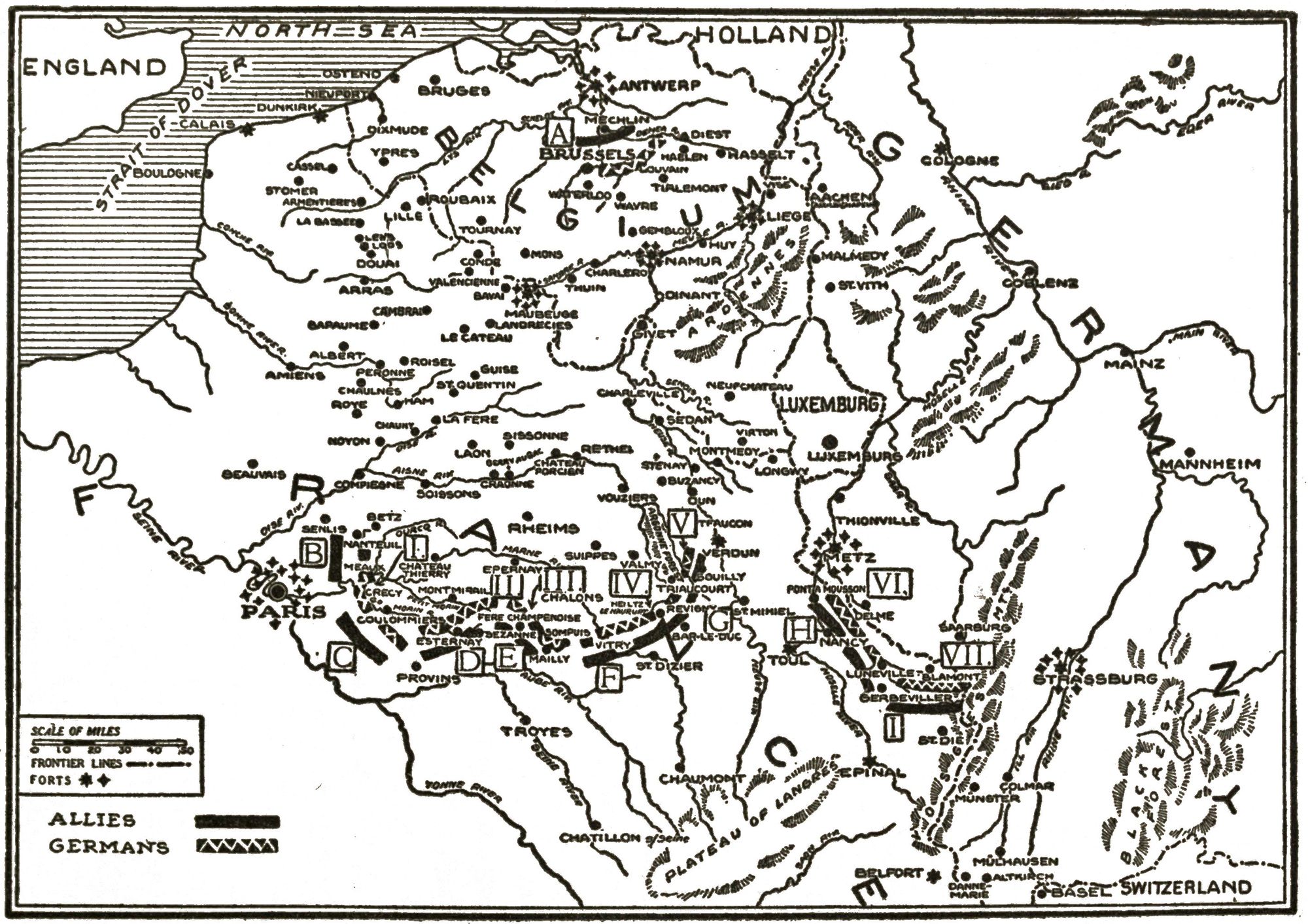 At the outset of the war Germany found herself with greater numbers, superior artillery, and possessing a mechanical efficiency surpassing anything that war had known. She was able to mobilize more men, transport them more quickly, and employ them more effectively than her opponents. Her heavy artillery gave her a decisive advantage both in the matter of enemy fortresses and enemy armies. But they did not quite avail to give her the decisive victory she had expected.