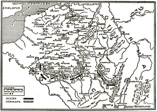 Worst of all, from the allied point of view, there now came a difference in opinion between the French General Staff and the French Civil Government. The former wished to retire behind the Meuse and evacuate the eastern forts and trenches, thereby gaining a strong defensive line, but surrendering Verdun. The (p. 491) Government felt that such a retreat would be accepted as a grave disaster, would depress the French people, and result in a political overturn.