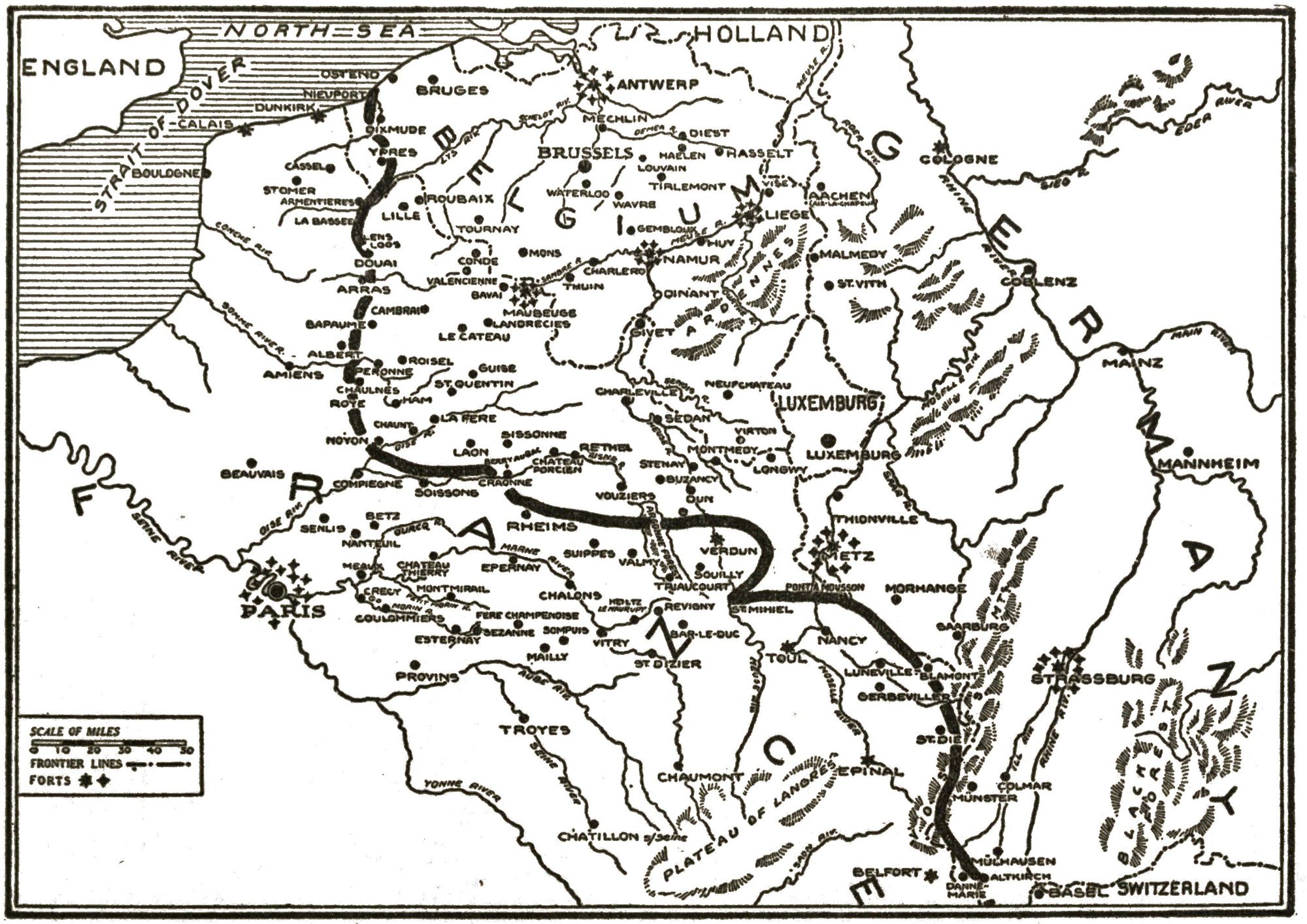 There was every reason why the Germans could expect that a sudden and terrific blow would permit them to get to Verdun, take the forts on the east bank, and possibly cut clear through the French lines and break them into two parts. Not impossibly this would mean retirement as far as the old Marne battle field: certainly it would mean the extinction of French hope. So the Germans reasoned.