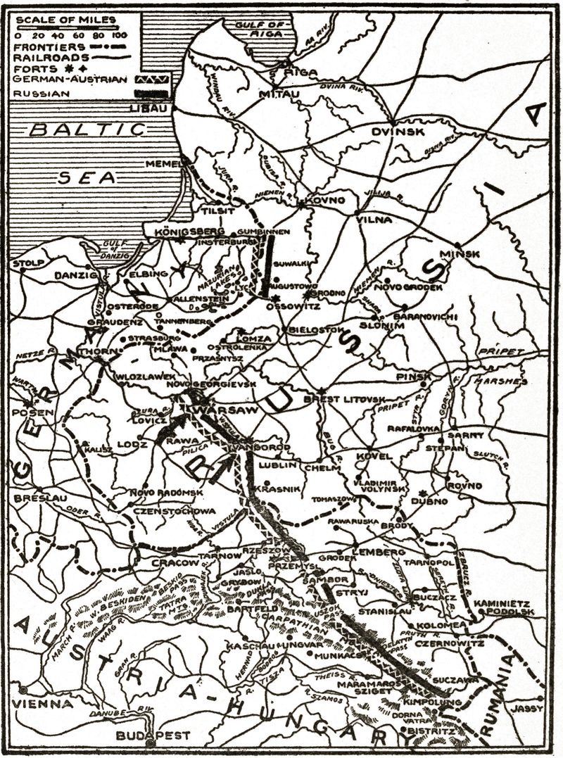 Thanks to the genius of Hindenburg, East Germany is no longer threatened by Russia. Last year, in cooperation with our valiant ally, Austria-Hungary, we drove back the Russians, (p. 507) overwhelming their armies as well as their strongholds. We took possession of Courland, Lithuania and Poland. For the last two months, it is true, the Russians have resumed the offensive. But, although they have gained considerable local advantages at terrible cost, they have not succeeded in breaking through our lines.