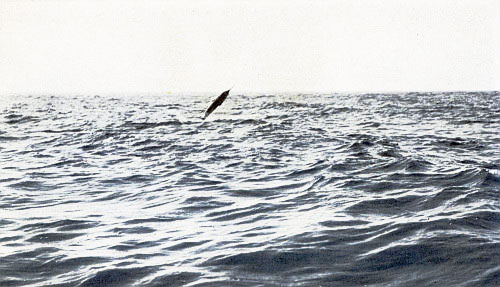 I jerked my rod. The bait gracefully leaped over a swell—shot along the surface, and ended with a splash. Again I jerked. As the bait rose into the air a huge angry splash burst just under it, and a broad-backed tuna lunged and turned clear over, his tail smacking the water.