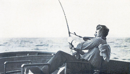 The summer of 1917 will never be forgotten by those fishermen who were fortunate enough to be at Avalon. Early in June, even in May, there were indications that the first record season in many years might be expected. Barracuda and white sea-bass showed up in great schools; the ocean appeared to be full of albacore; yellowtail began to strike all along the island shores and even in the bay of Avalon; almost every day in July sight of broadbill swordfish was reported, sometimes as many as ten in a day; in August the blue-fin tuna surged in, school after school, in vast numbers; and in September returned the Marlin, or roundbill swordfish that royal-purple swashbuckler of the Pacific.